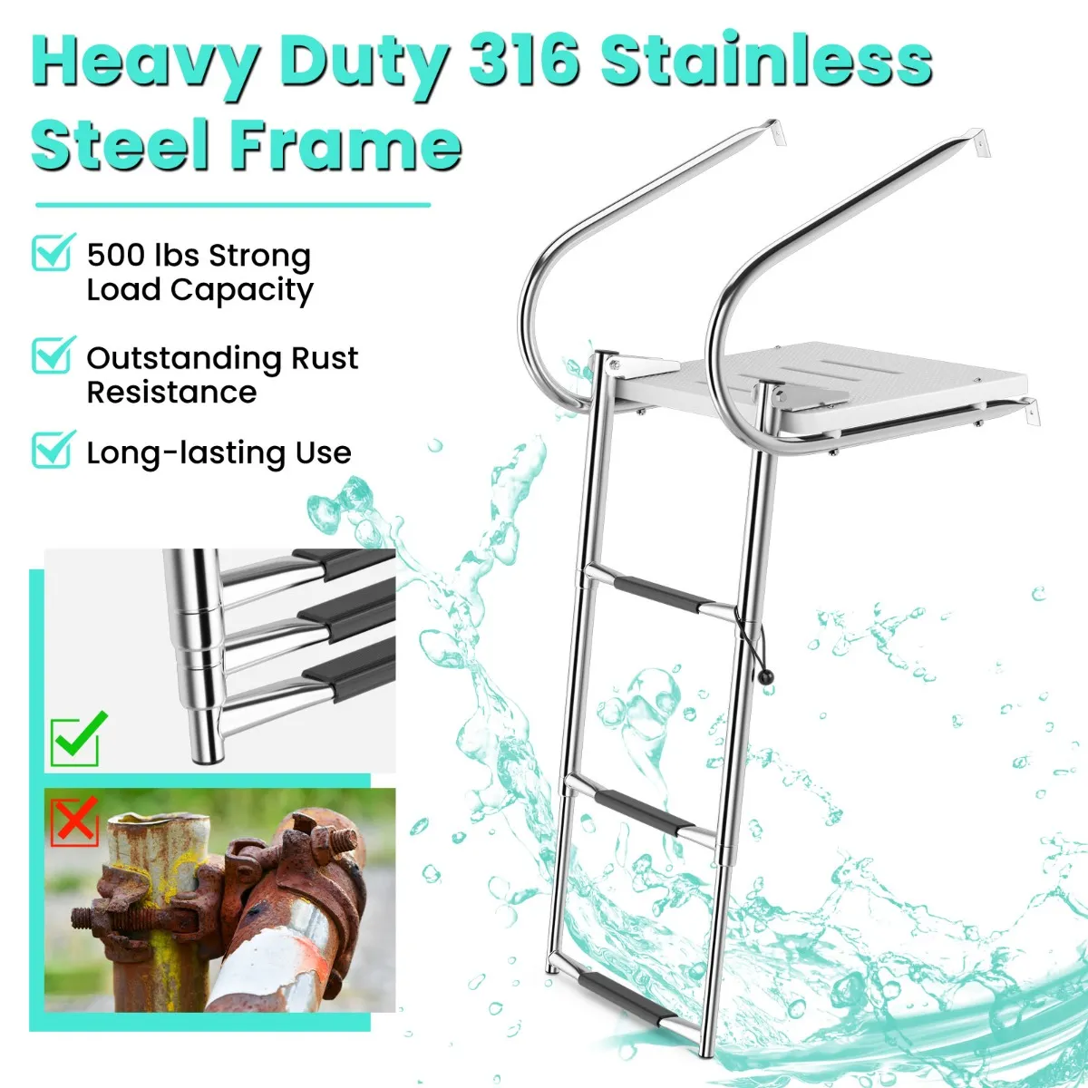 Gebouwd om lang mee te gaan – Deze 3-staps telescopische bootladder is gemaakt van een robuust roestvrijstalen frame en heeft een uitzonderlijke roestbestendigheid, een hoog draagvermogen van 227kg en een lange levensduur.