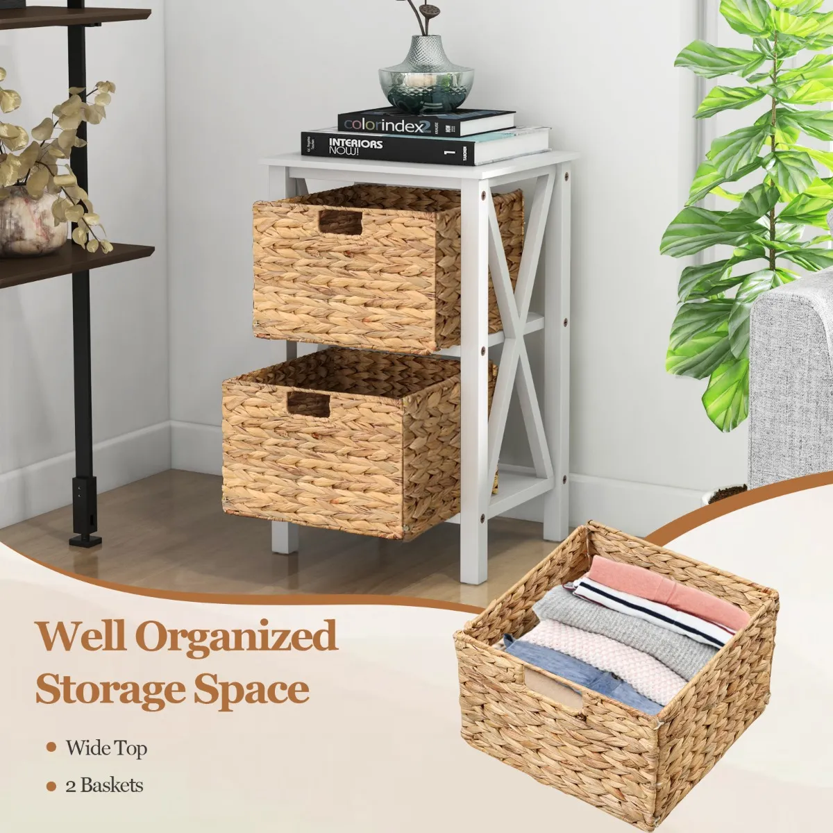 Het veelzijdige nachtkastje combineert esthetische schoonheid met grote bruikbaarheid. Je kunt voorwerpen classificeren met behulp van 2 afneembare zeegrasmanden. De bovenkant van de kast is perfect voor het opbergen van veelgebruikte benodigdheden voor eenvoudige toegang. Superieure materialen worden geselecteerd om de bijzettafel van gewone te onderscheiden. Natuurlijk acaciahout en rubberhout betekent een betere duurzaamheid, een langere levensduur en hogere stabiliteit.