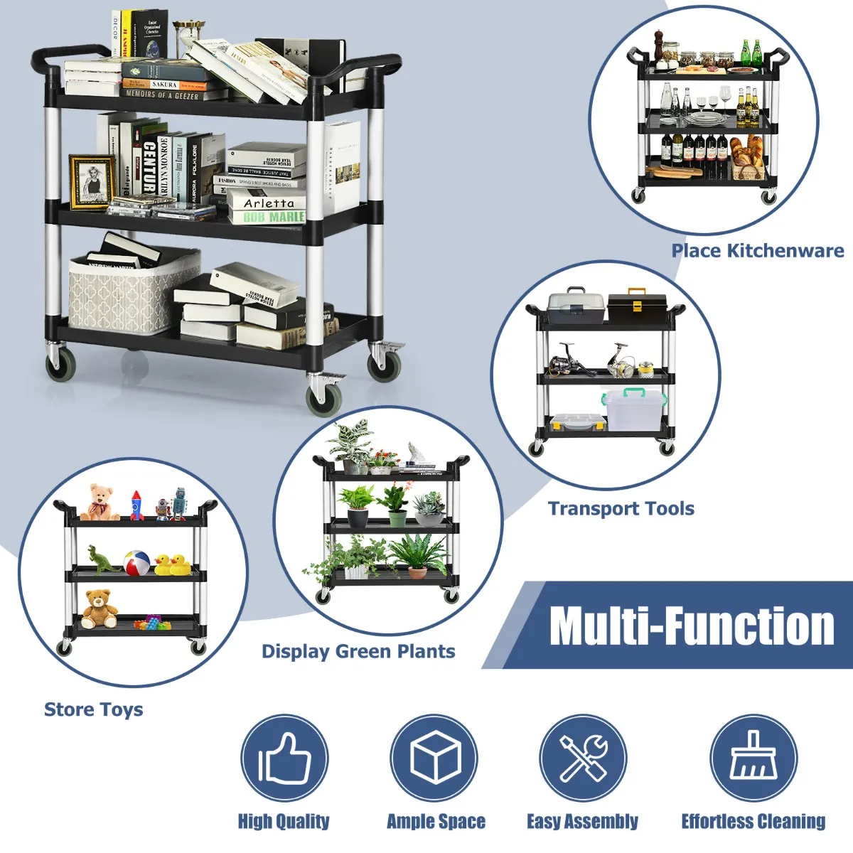 Breed toepassingsgebied:Â Deze multifunctionele servicewagen met 3 niveaus kan bij verschillende gelegenheden uitstekende prestaties leveren. Of je nu in een restaurant schoonmaakt, gereedschap in een werkplaats plaatst of documenten in een kantoor vervoert, met deze 3-traps servicewagen kun je moeiteloos meerdere voorwerpen tegelijk vervoeren.