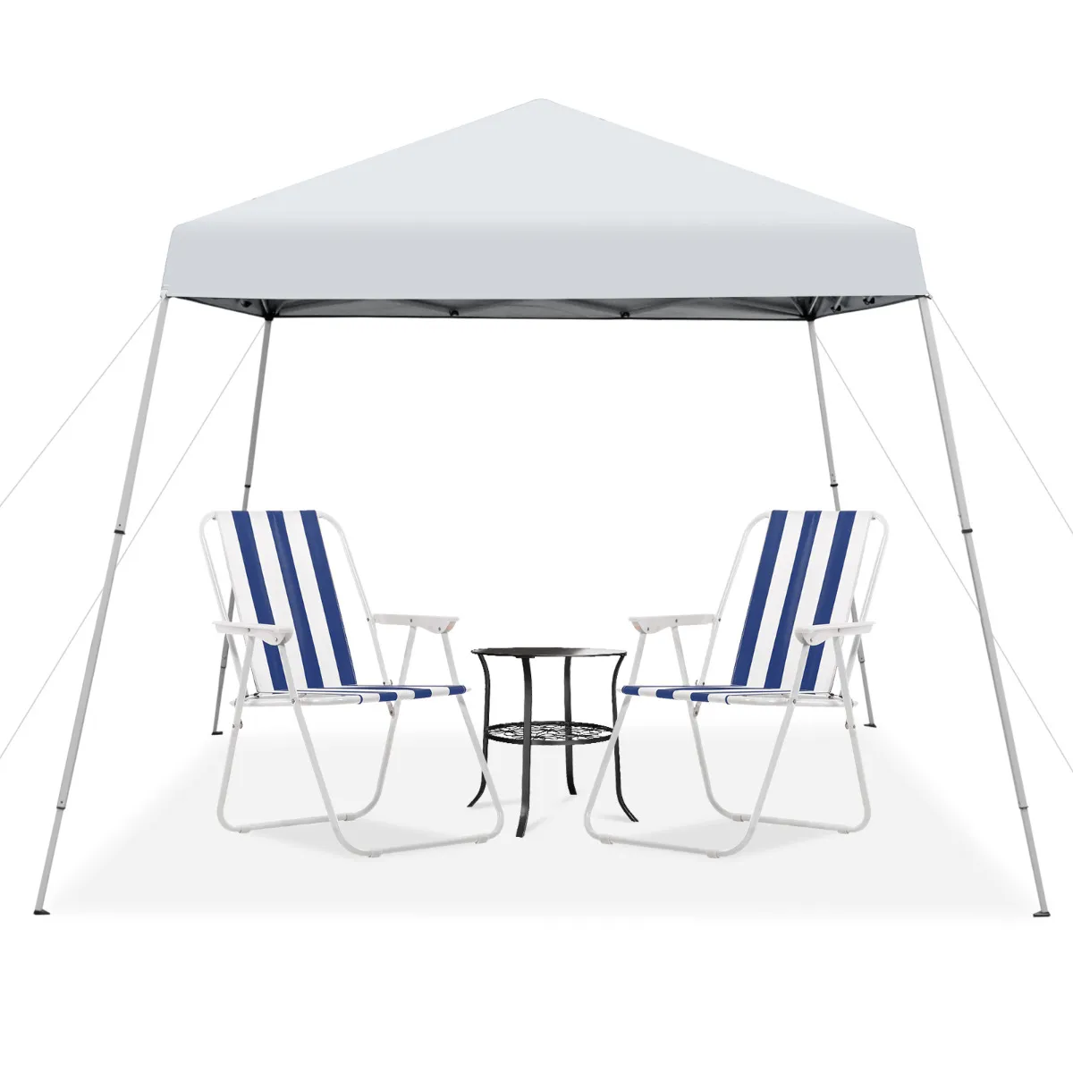 Dit pop-up paviljoen kan eenvoudig en snel worden gemonteerd en gedemonteerd door het centrale vergrendelingssysteem in te drukken of te trekken. En als je hem niet gebruikt, kun je hem tot een compact formaat opvouwen en in de draagtas opbergen. Het paviljoen is gemaakt van duurzaam Oxford-weefsel en gecoat met premium zilver, dat een uitstekende bescherming tegen de zon en regen biedt. Bovendien bieden wij ook 4 scheerlijnen, 8 metalen palen en 4 kunststof voetkussens met paalgaten om de luifel stevig op de grond te bevestigen, wat voor meer stabiliteit en veiligheid zorgt. Let op: We raden af om deze luifel te gebruiken als het hard waait en regent.