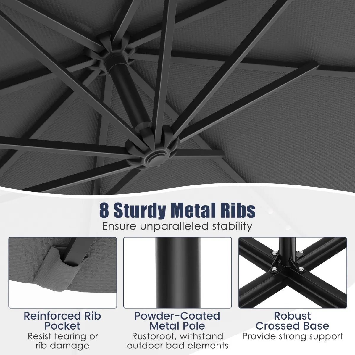 Eenvoudig in gebruik en veelzijdige toepassingen: De hangende marktscherm is uitgerust met een eenvoudige draaigreep, die het openen en sluiten gemakkelijk maakt. Daarnaast is er een praktische lusband aanwezig om het scherm bij niet-gebruik tot een compacte grootte te brengen. Dankzij het gebruiksvriendelijke ontwerp is het geschikt voor verschillende buitenruimtes, waaronder terrassen, tuinen, zwembadgebieden en meer.