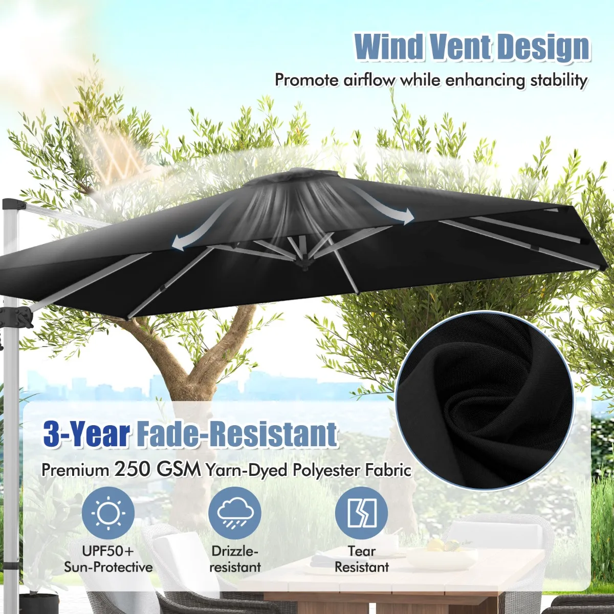 【Hoogwaardig geverfd polyestergaren doek】: Deze offset parasolluifel is gemaakt van hoogwaardig geverfd polyestergaren doek, dat superieure bescherming tegen de zon en waterbestendigheid biedt. Bovendien is de stof zo ontworpen dat hij tot 3 jaar lang niet vervaagt en er schitterend blijft uitzien.