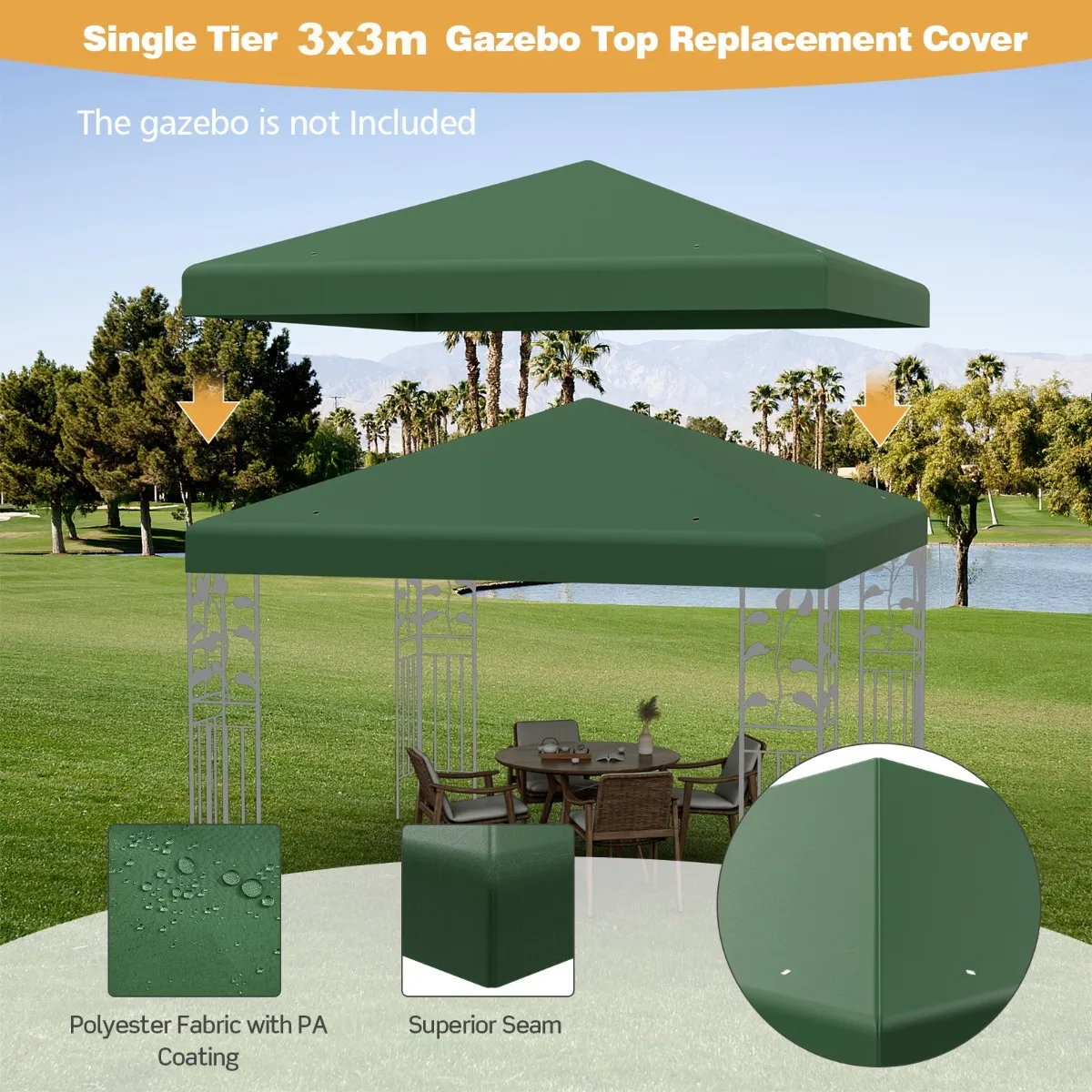 【300 x 300cm standaard formaat luifel hoes】De 300 x 300cm standaard tuinpaviljoen luifel samen met 22cm schuine lengte zal een perfecte keuze als vervanging luifel dekking, die biedt u een ruime ruimte onder beschutting.
