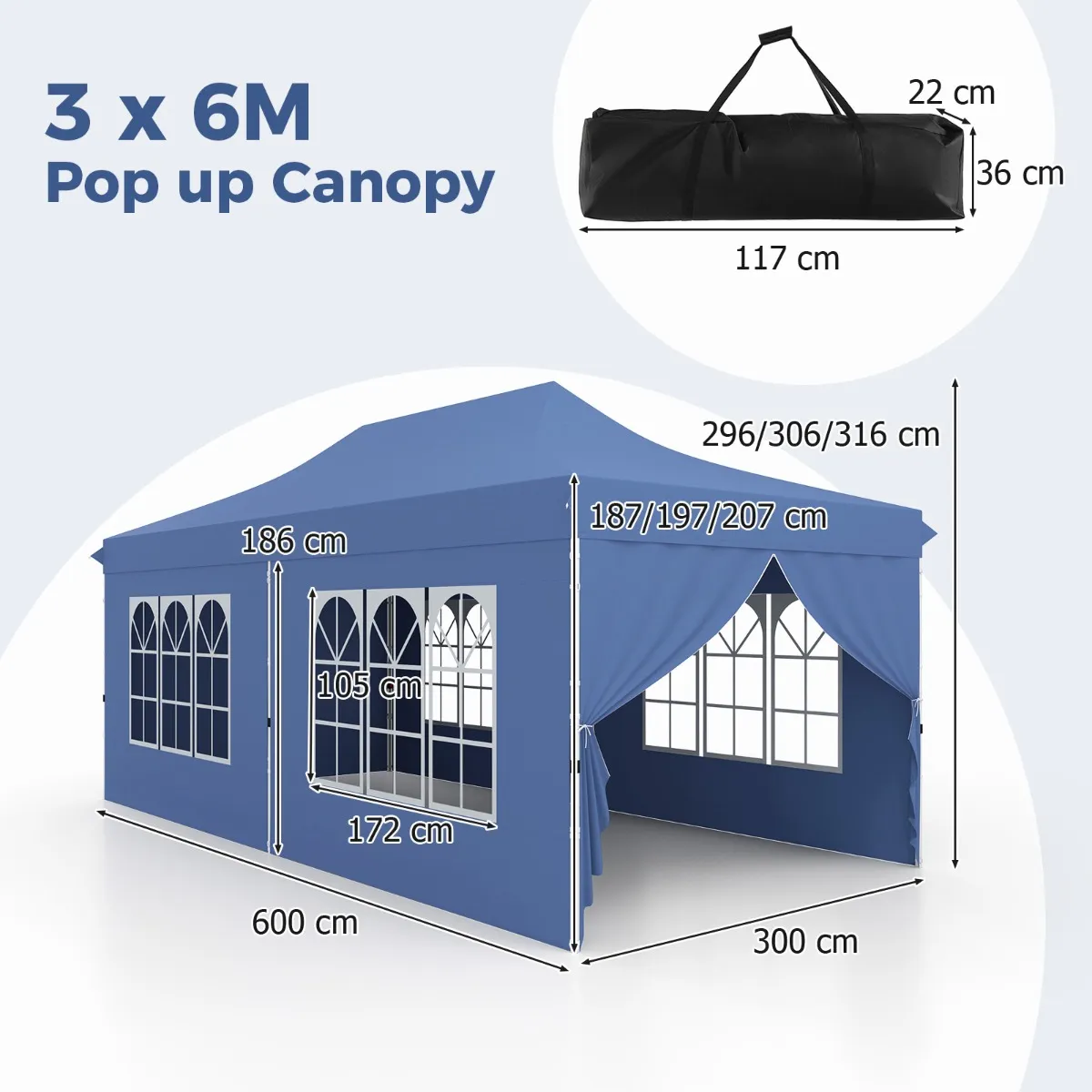 Stevig en stabiel ontwerp: Deze pop-up partytent van 300 x 600 cm wordt ondersteund door een roestbestendig, gepoedercoat metalen frame dat zorgt voor uitstekende stabiliteit en duurzaamheid. Dankzij windbestendige scheerlijnen, metalen grondpennen en stevige voetplaten staat de tent ook bij winderig weer stevig.