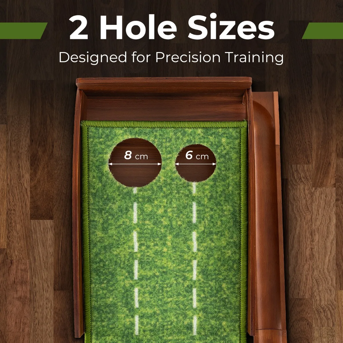 Ontworpen voor precisietrainingen: Met 2 maten gaten (diameter gaten: 8 cm, 6 cm), verhoogt deze golf oefenmat geleidelijk de moeilijkheidsgraad naarmate je meer vertrouwen krijgt, waardoor je putting spel en algehele golfprestaties verbeteren.