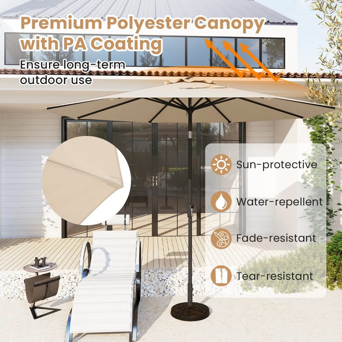 Stabiele en betrouwbare constructie: Dankzij de acht stevige metalen baleinen met veiligheidsvergrendeling biedt de parasol extra stabiliteit en windbestendigheid. Een ventilatieopening aan de bovenkant zorgt voor een continue luchtcirculatie en vermindert de winddruk.