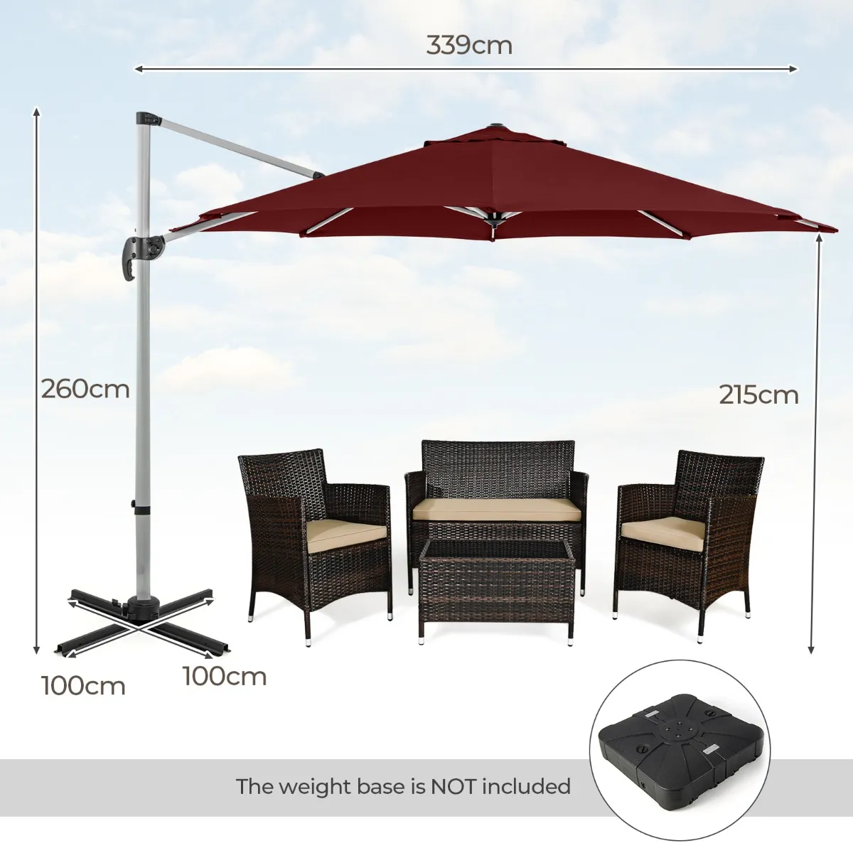 - Totale afmetingen: 339 x 260 cm (Dia. x H)