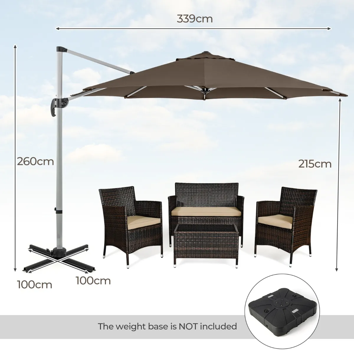 Geniet van een groot rond schaduwoppervlak met een diameter van 339 cm, perfect voor het creëren van gezellige buitenverblijven