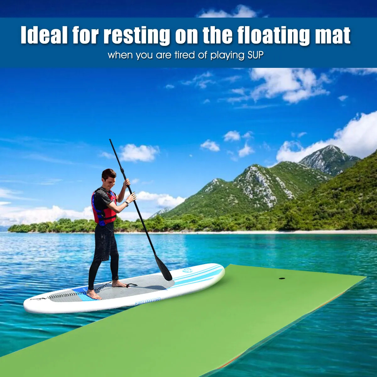 Hoogwaardige materialen: Onze drijvende wateroase bestaat uit 3-laags hoogwaardig XPE-schuim, dat een hoge scheurvastheid en perforatiebestendigheid garandeert. Deze zeer elastische en onvervormbare zwemmat heeft een draagvermogen van maximaal 400 kg en is geschikt voor 4-6 personen om samen te spelen of te ontspannen.