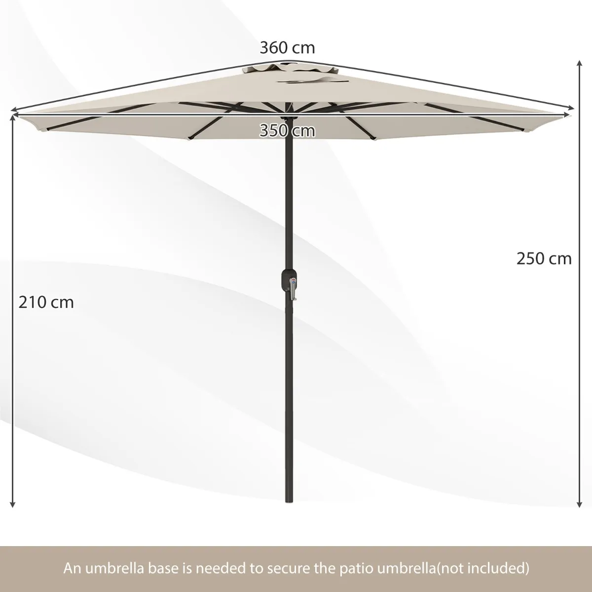 Grote terrasparasol met 360 cm diameter voor royale schaduw