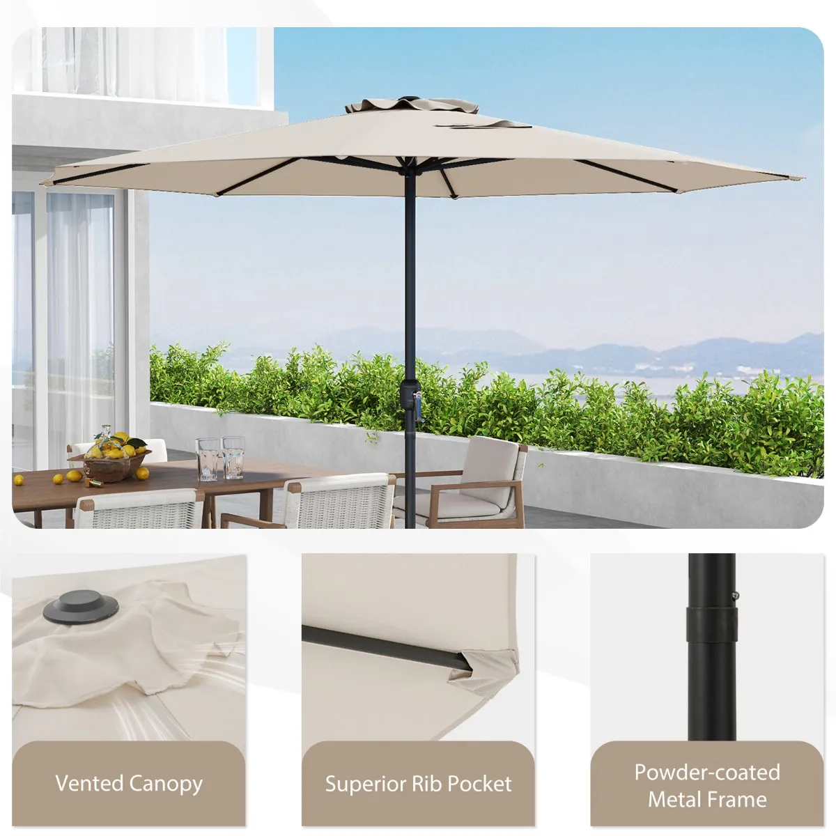 Stabiele constructie: De geventileerde parasol is gemaakt van gepoedercoate metalen buizen en versterkt met 8 heavy-duty ribben. Hij biedt betrouwbare ondersteuning en duurzaamheid, waardoor hij ideaal is voor winderige omgevingen. Let op: voor extra stabiliteit is een verzwaarde parasolvoet vereist (niet inbegrepen).