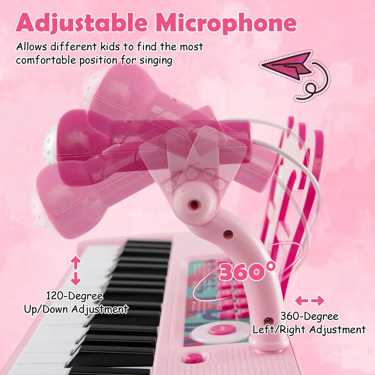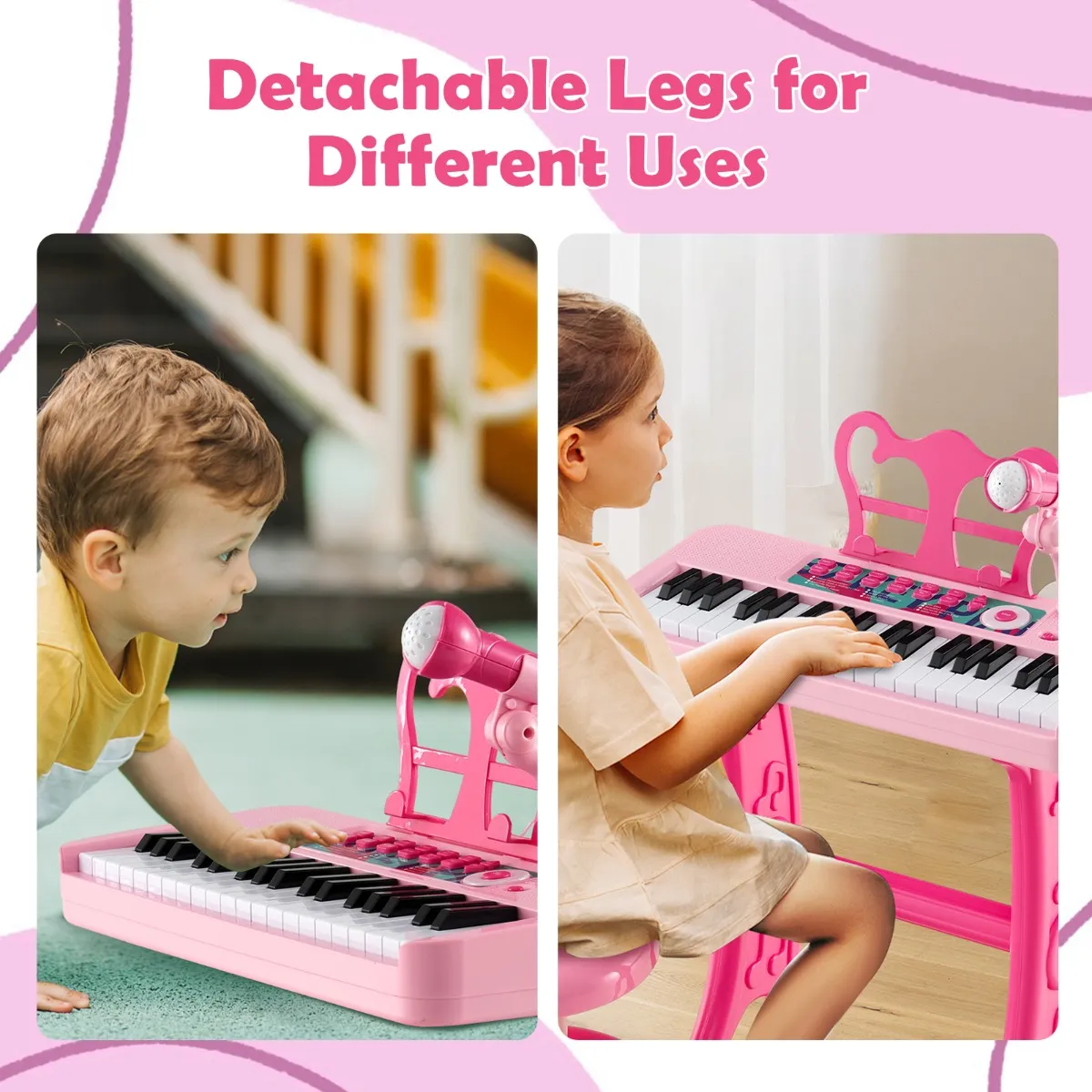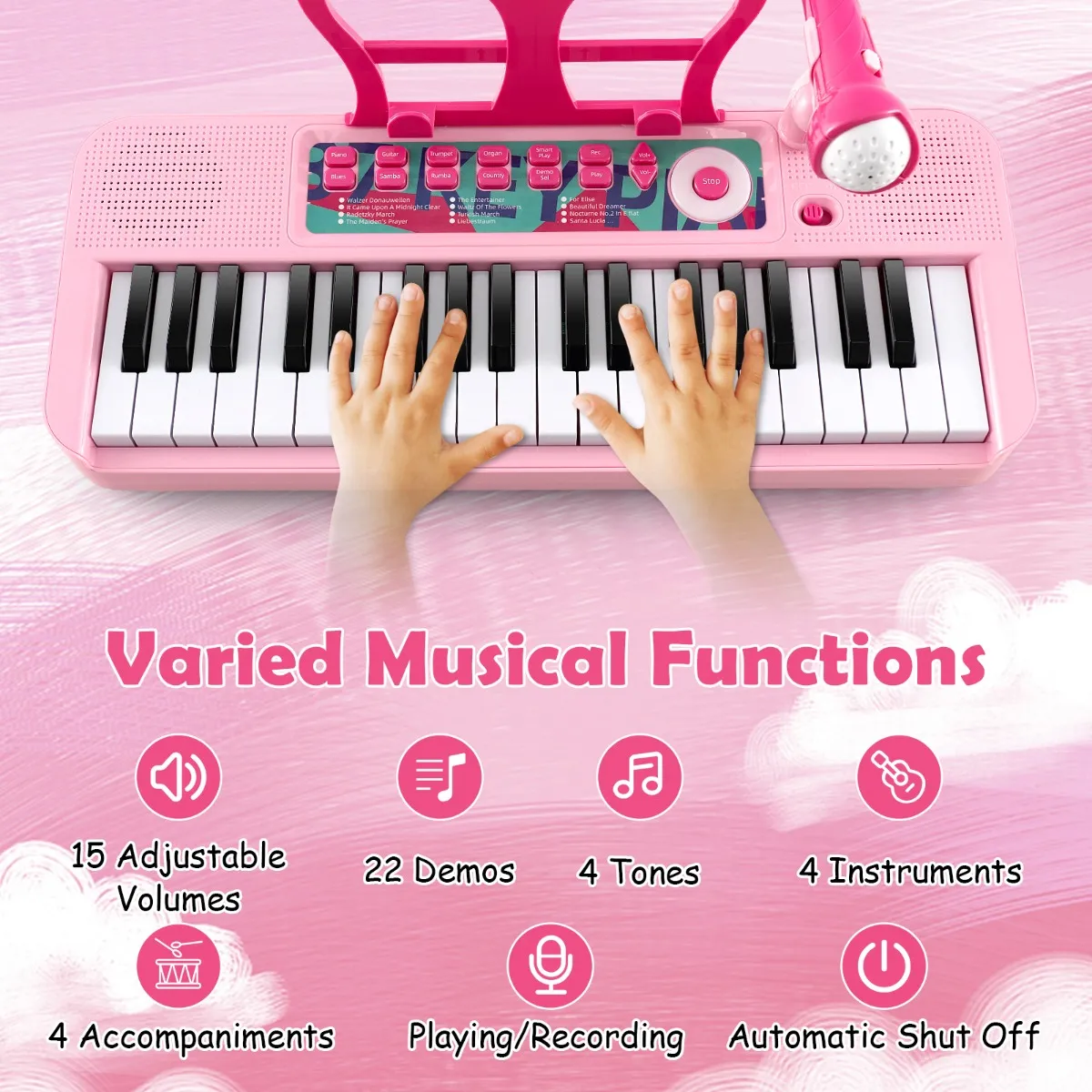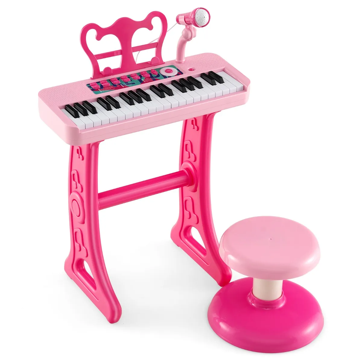 37-Toets Digitale Kinderpiano Met Verstelbare Kruk & Microfoon Afneembaar Elektronisch Keyboard Met Afneembare Muziekstandaard-Roze