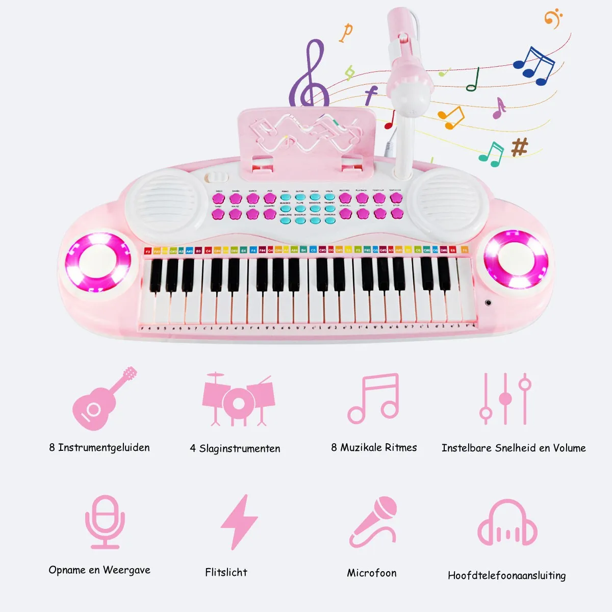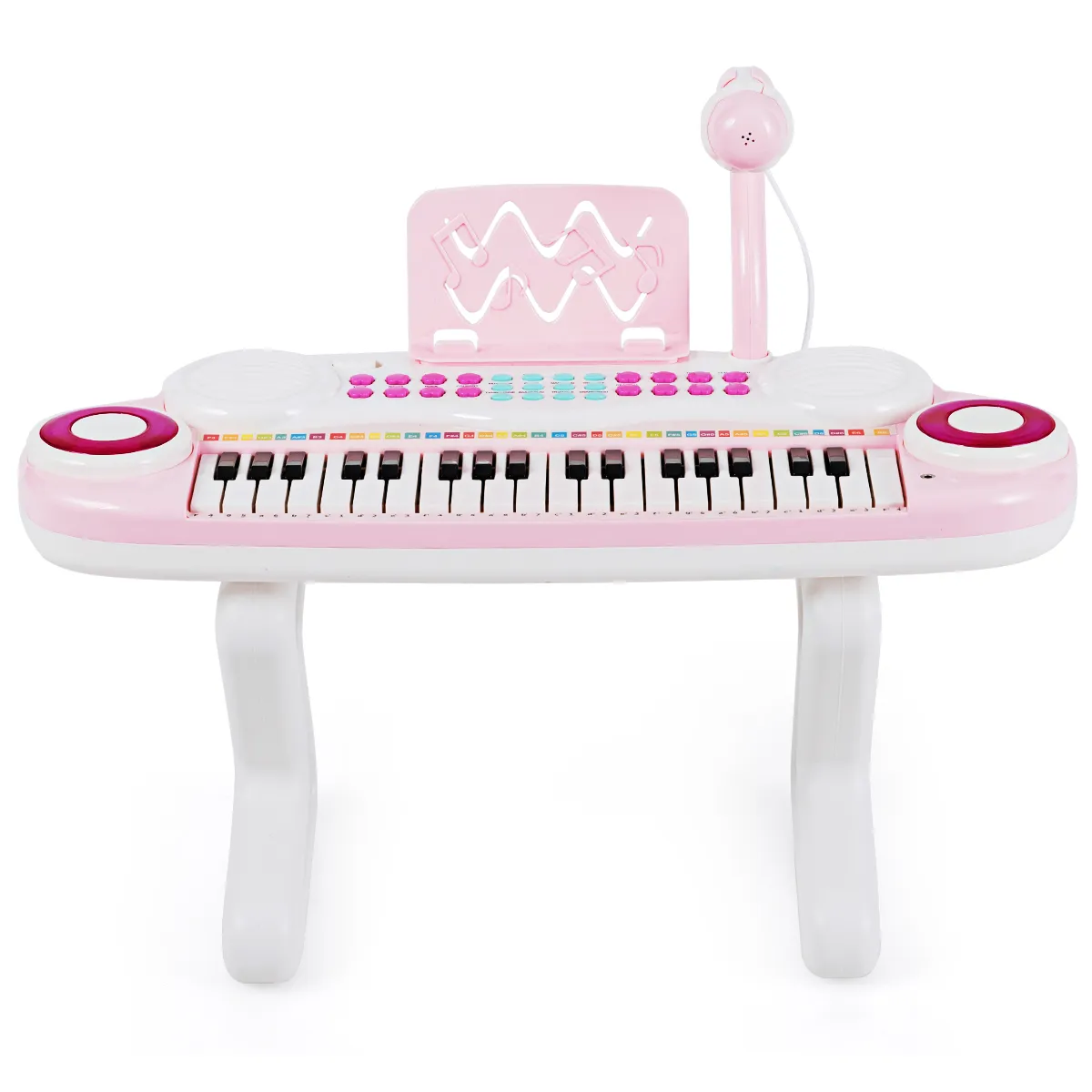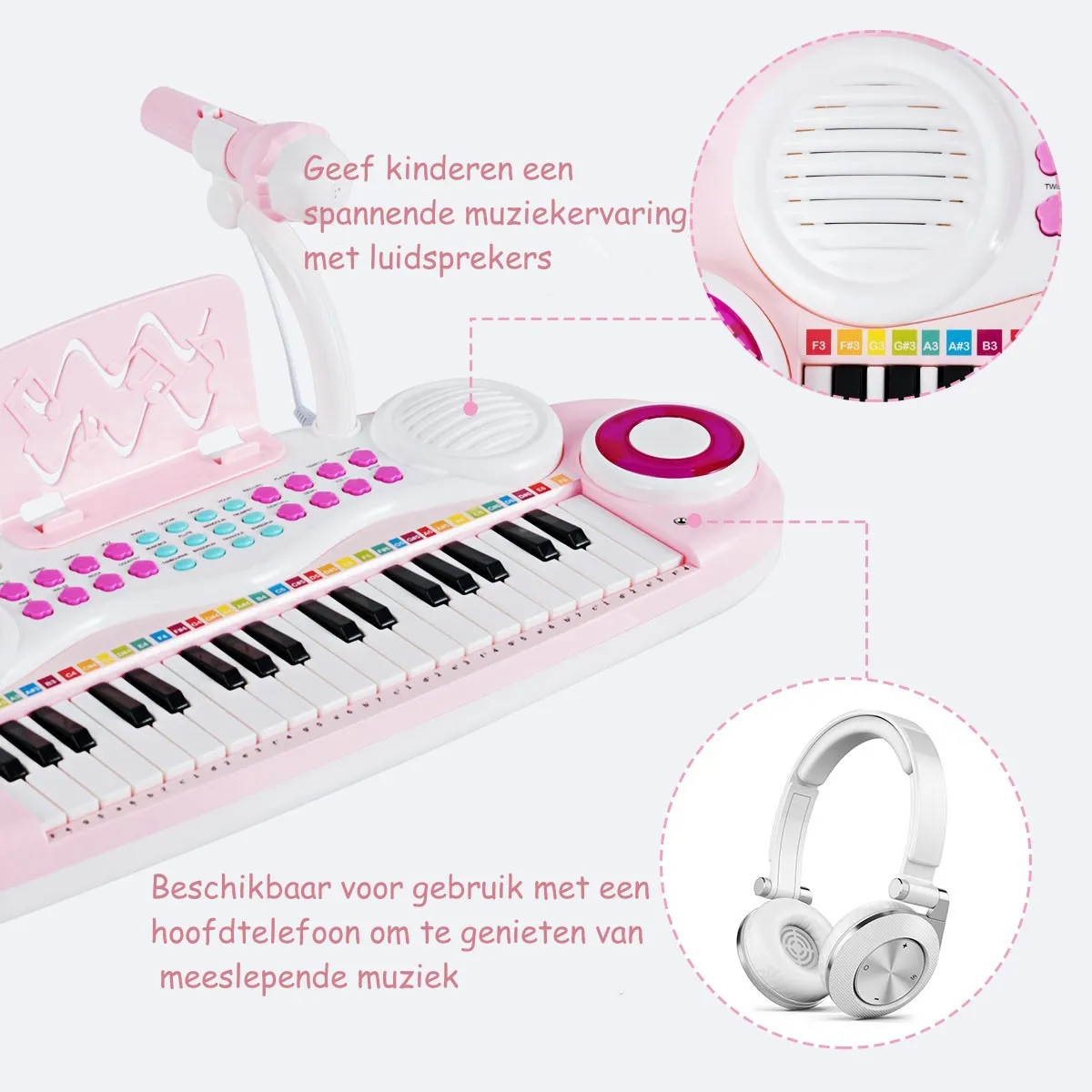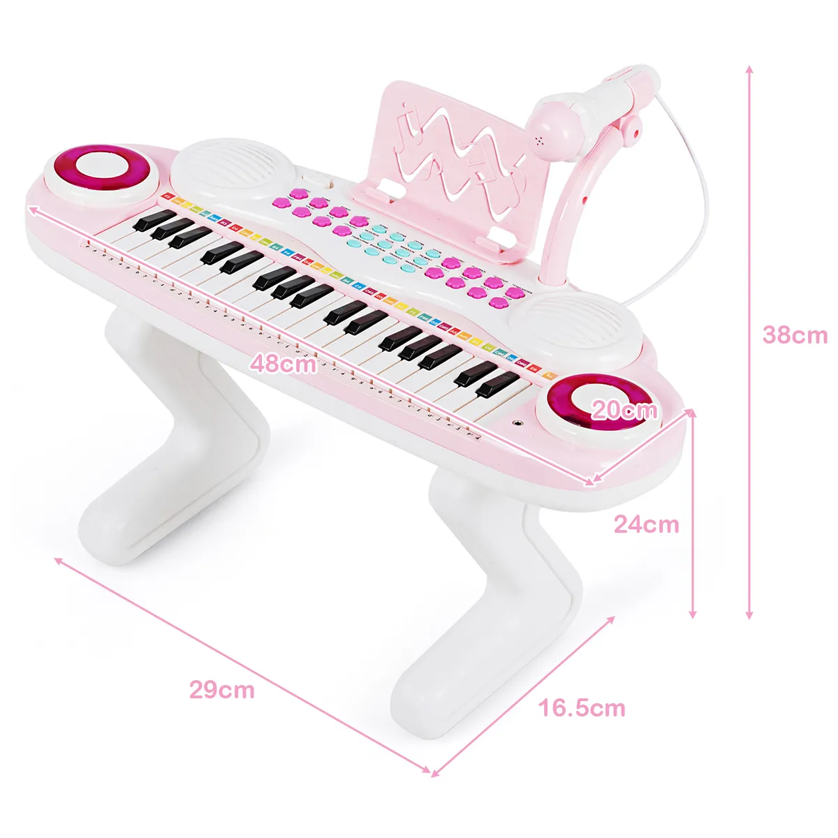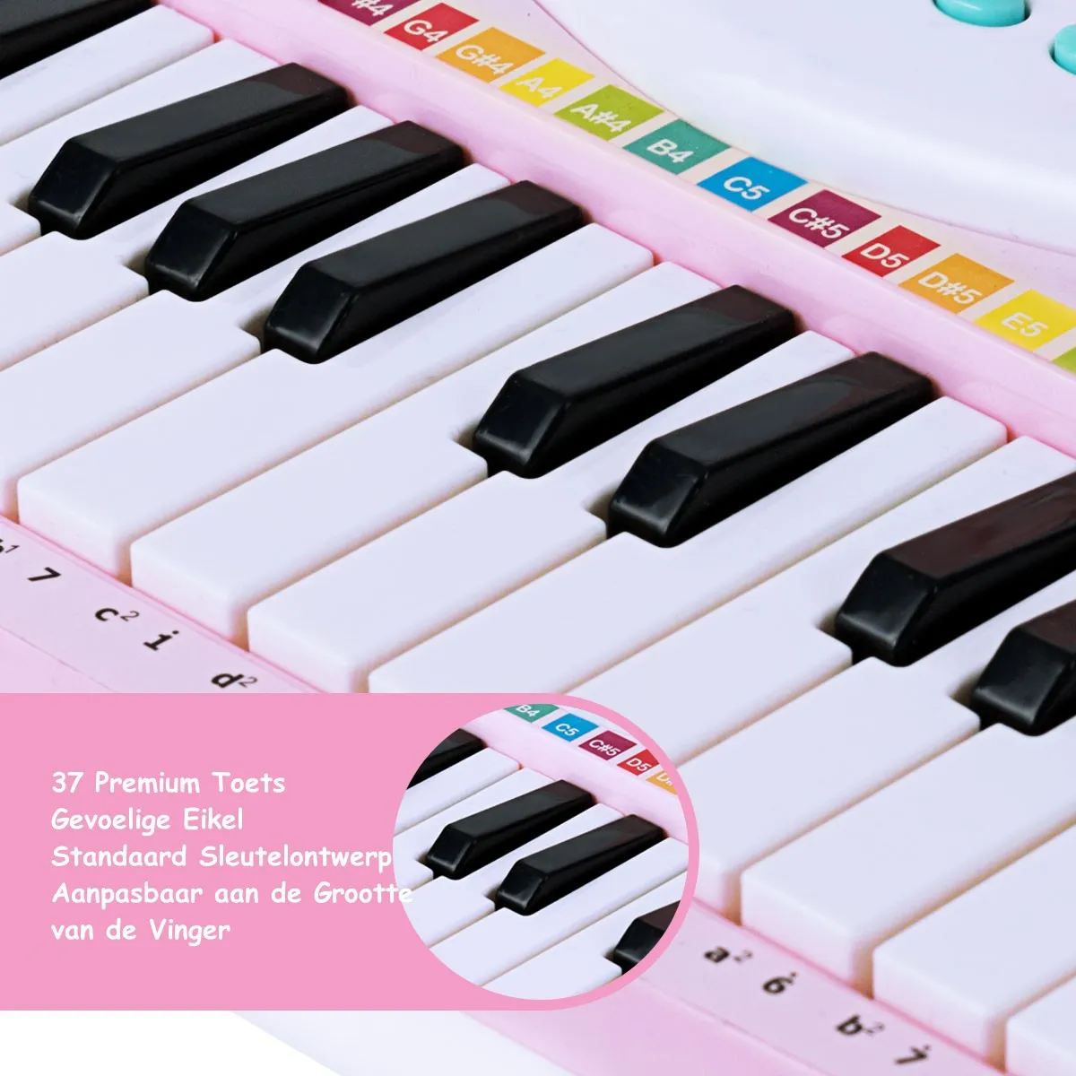 37-Toets Elektronisch Pianotoetsenbord Voor Kinderen Draagbare Speelgoedpiano Met Ritmalampje Microfoon Afneembare Voetjes Roze