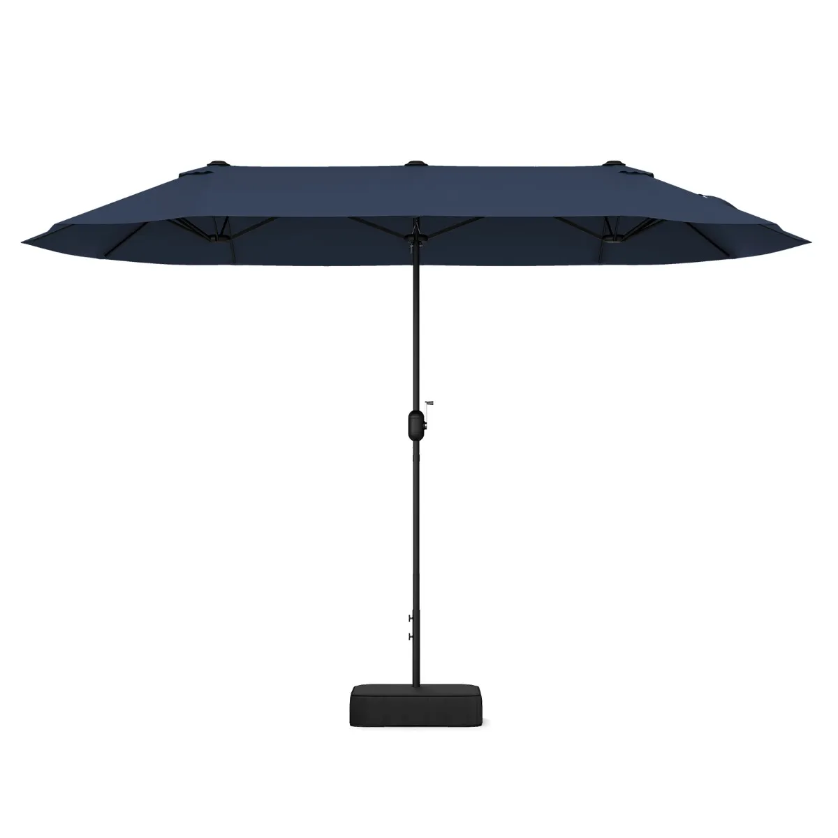 De rechthoekige dubbele parasol biedt een groot schaduwoppervlak, perfect voor familiebijeenkomsten. Het ventilatiegat zorgt voor een verfrissende ervaring. Het doek is gemaakt van PA-gecoat doek, is slijtvast, biedt bescherming tegen de zon en houdt motregen buiten. Het frame zorgt voor stabiliteit dankzij 12 windbestendige baleinen. Voor extra stabiliteit leveren we een basis die kan worden gevuld met zand en is voorzien van een veiligheidsslot om per ongeluk opvouwen te voorkomen. De slinger maakt het gemakkelijk om hem te openen en de bevestigingsband maakt het gemakkelijk om hem op te bergen.