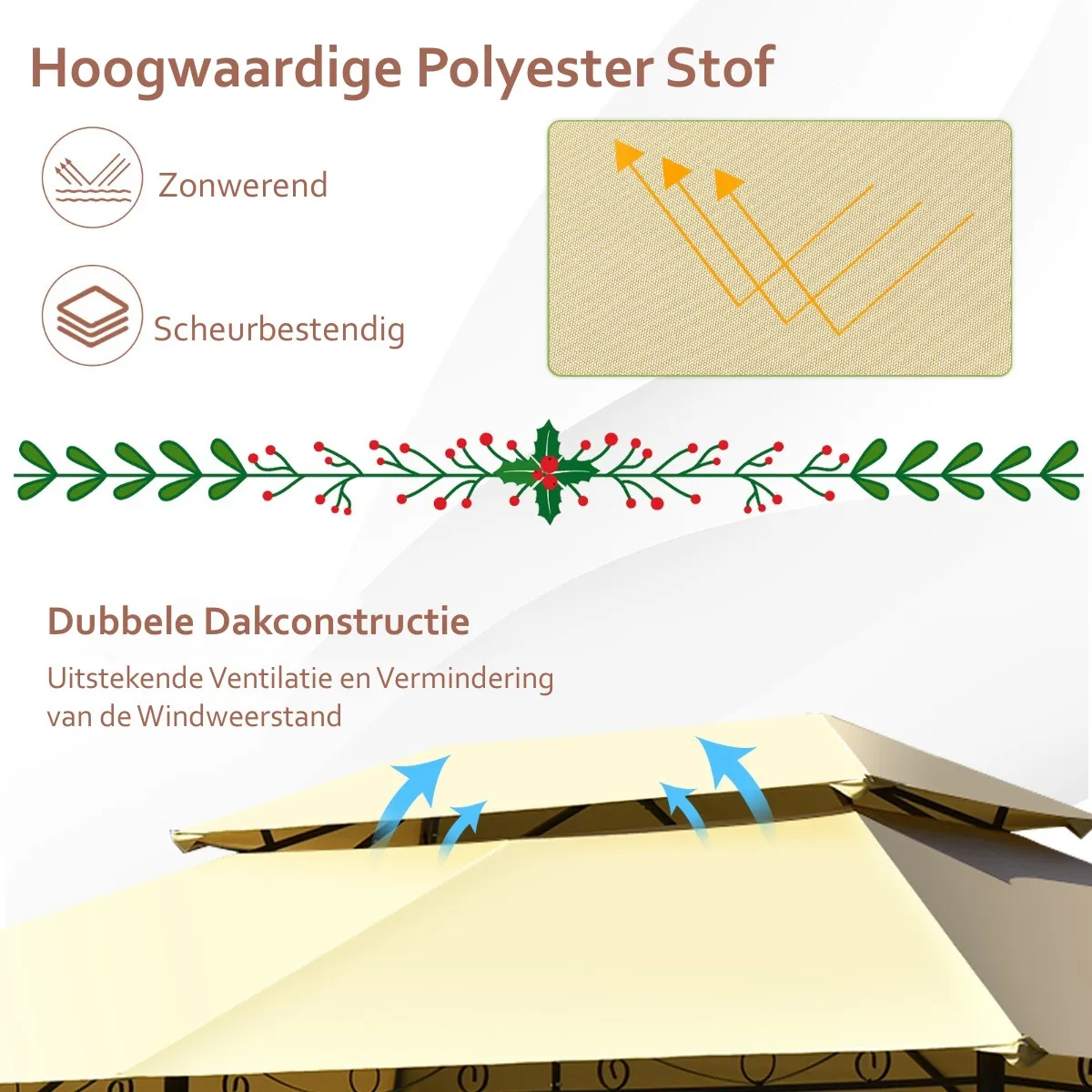 【Materiaal voor alle weersomstandigheden】 De luifel van dit tuinhuisje is gemaakt van hoogwaardig polyesterweefsel, dat niet alleen duurzaam en scheurbestendig is, maar ook zonbestendig, zodat u kunt ontspannen in de koele schaduw. En het unieke dubbele dakontwerp zorgt voor uitstekende luchtventilatie en vermindering van de windweerstand.