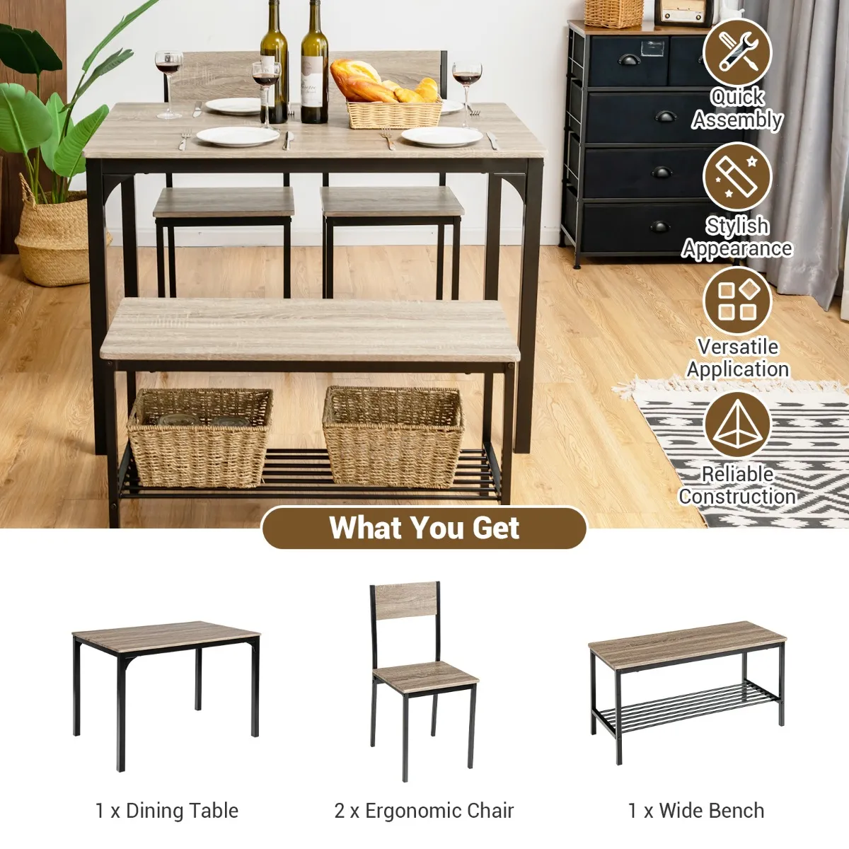 【Het ruimtebesparende ontwerp verbetert de bruikbaarheid】Twee stoelen zonder armleuningen en het bankje kunnen onder de tafel worden opgeborgen zonder ruimte in beslag te nemen. Bovendien voorziet de extra steun onder de bank in de behoefte aan zitplaatsen en opslag. Deze tafel, stoelen en bank zijn perfect voor kleine ruimtes.