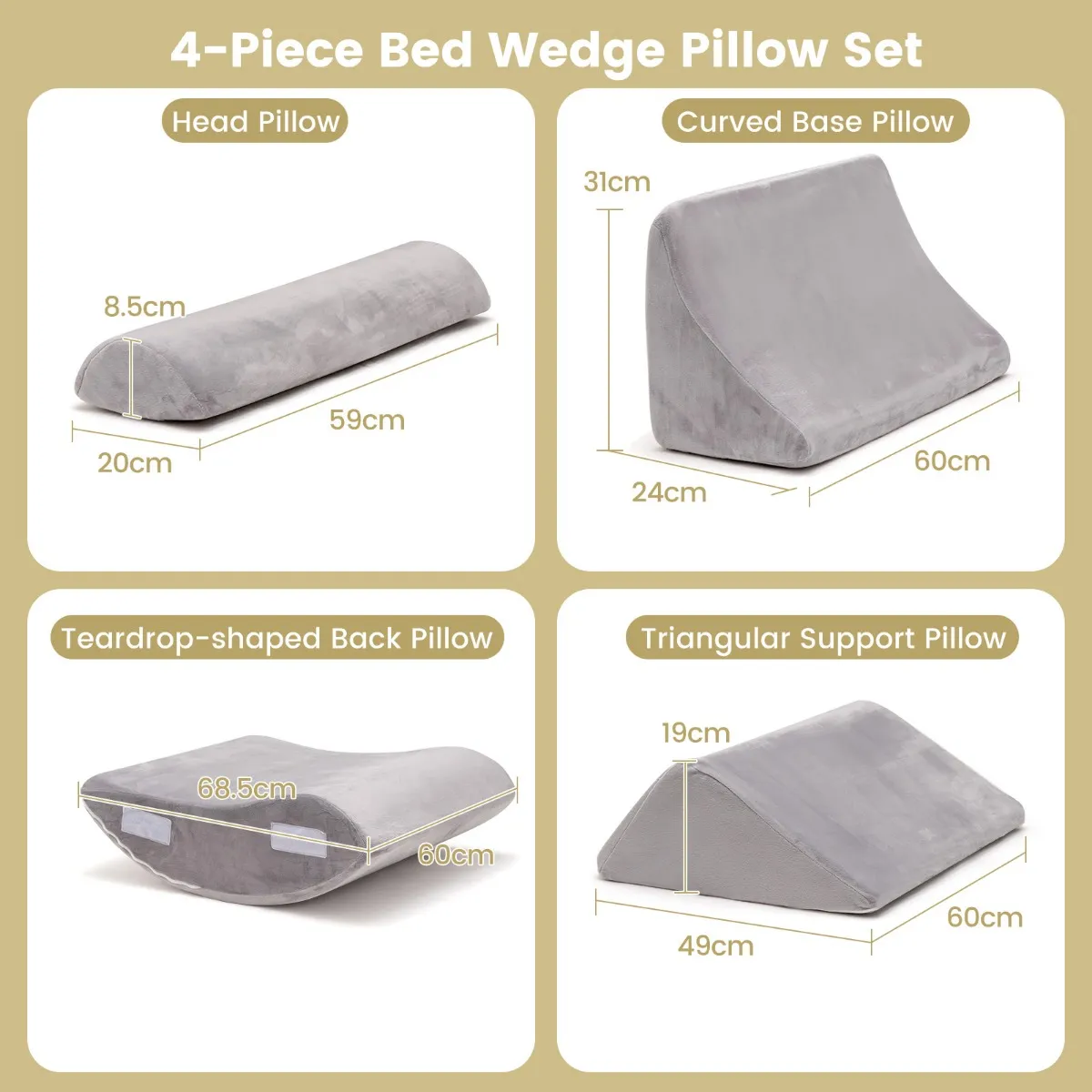 Deze kussenset is gevuld met traagschuim met hoge dichtheid en kan alle delen van je lichaam ondersteunen, de doorbloeding verbeteren en uitstekend geschikt zijn voor het bestrijden van snurken of brandend maagzuur. Bovendien kunnen de extra hoofdsteunen worden verwijderd of verplaatst om de taille te ondersteunen, en je kunt de klittenbandsluitingen gebruiken om de hoofdsteunen vast te zetten. Je kunt het naar behoefte in verschillende situaties gebruiken, zodat je in een comfortabelere positie kunt lezen, werken of slapen.