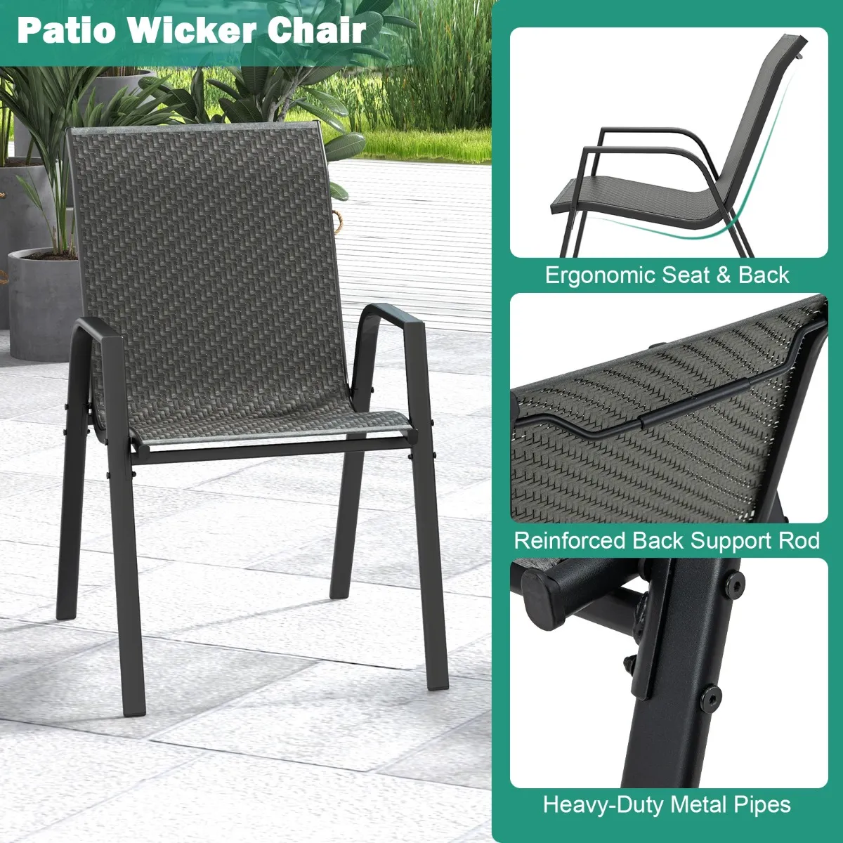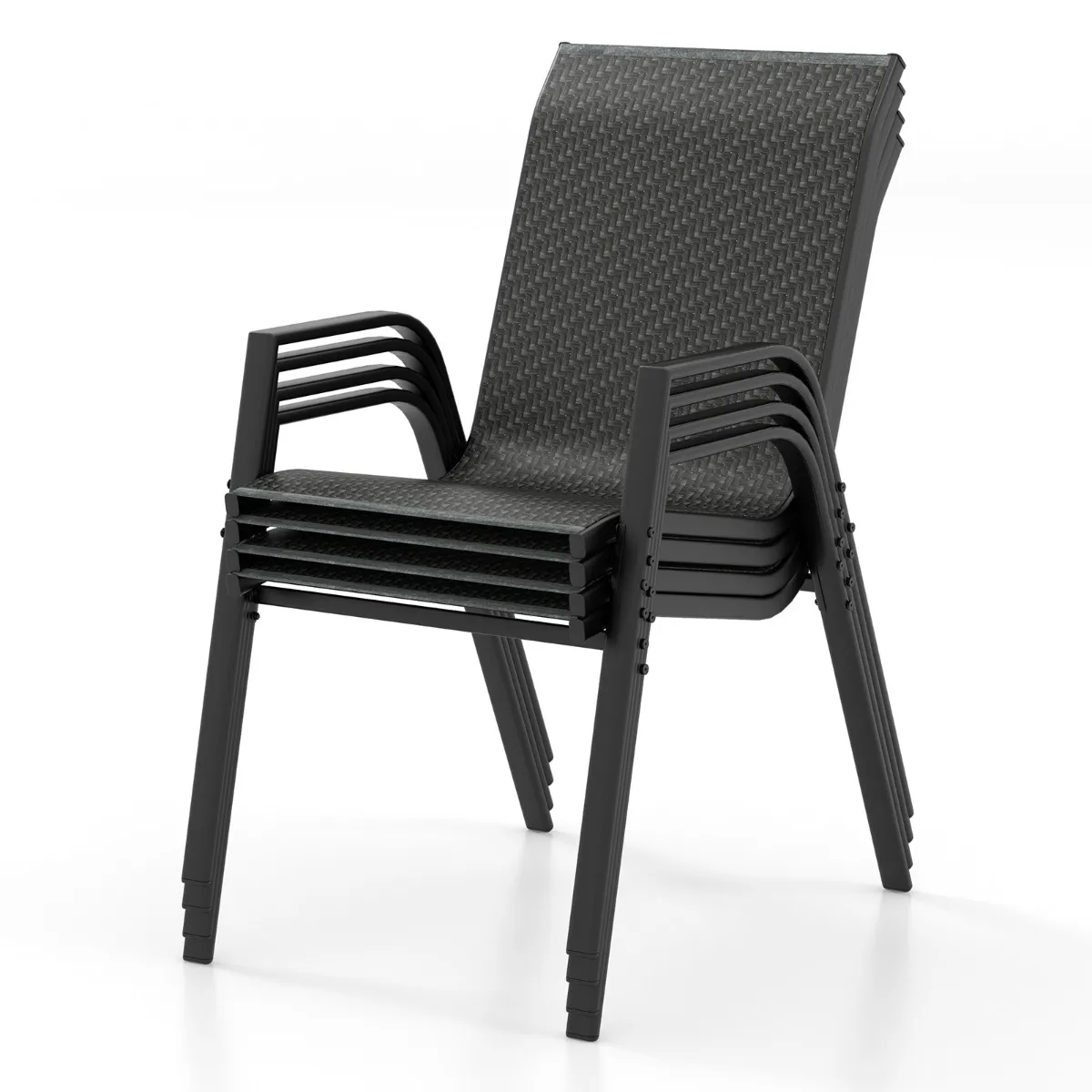 Het machinaal geweven rotan zorgt voor duurzaamheid en kleurbehoud. De stapelbare functie zorgt voor eenvoudige opslag en maximaliseert de ruimte voor andere buitenactiviteiten. Met een stevig metalen frame zijn deze stoelen roestbestendig en bieden ze uitstekende stabiliteit. Het ergonomische ontwerp zorgt voor optimaal comfort en maakt ze ideaal voor diverse buitenruimtes zoals achtertuin, zwembadzijde en veranda. Upgrade uw buitenzitplaats met deze 4 veelzijdige en stijlvolle tuinstoelen.