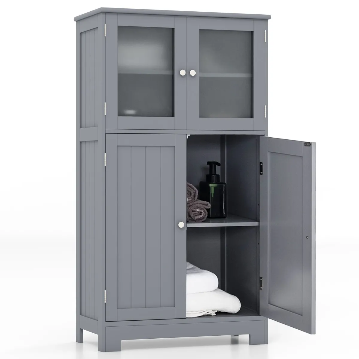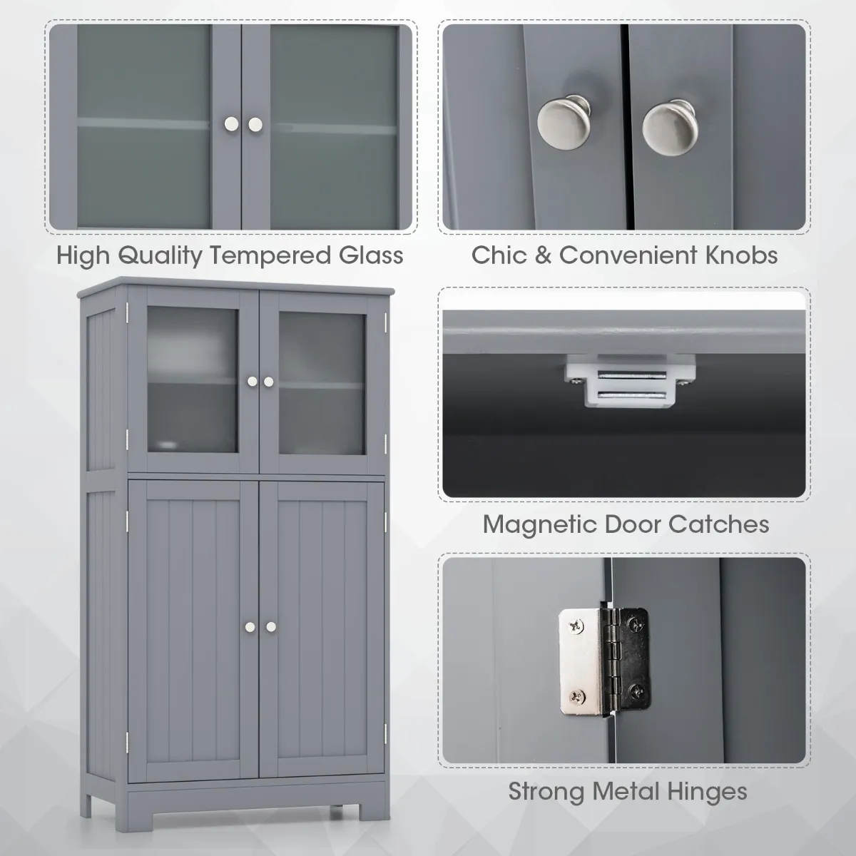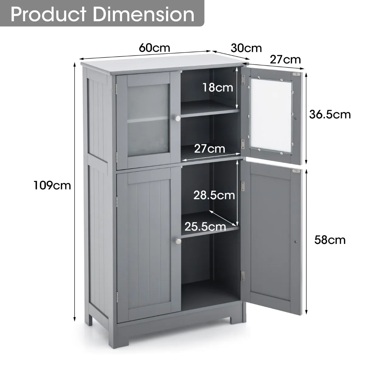 【Hoogwaardige en duurzame materialen】Gemaakt van hoge kwaliteit MDF en bespoten met waterbestendige verf, is deze vloerkast bestand tegen vochtigheid voor gebruik in een natte omgeving en zorgt voor grote stevigheid voor langdurig gebruik. Bovendien, de matte gehard glazen deuren zijn niet gemakkelijk gebroken en kan houden uw persoonlijke items niet worden gezien.