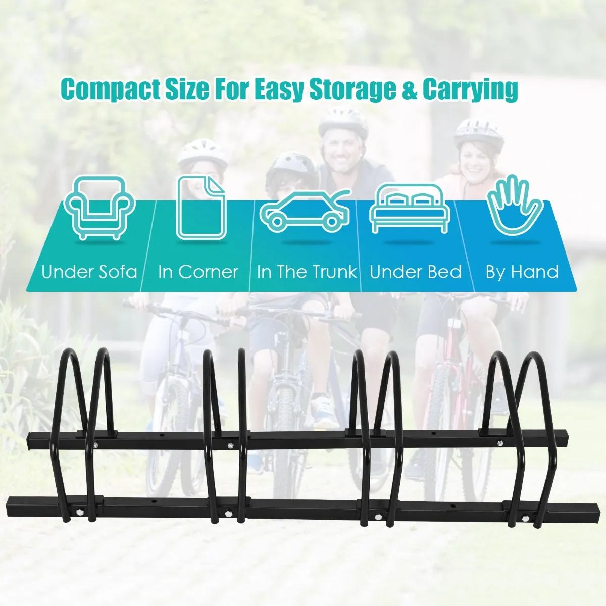 Er zijn 4/5/6 opslag posities op elk rek waarmee u effectief kunt organiseren fietsen van verschillende types op een ordelijke manier. Op deze manier kunt u uw omgeving altijd opgeruimd houden, wat u zeker een goed humeur zal bezorgen. Afgezien van de systematische indeling van fietsen, kan ons fietsenrek dankzij de compacte afmetingen ook worden meegenomen als u op stap bent en zowel binnen als buiten worden gebruikt. Wat meer is, om hoge kwaliteit van fietsenrek te waarborgen, kiezen wij eersteklas staal als materiaal van fietsenrek dat in stevigheid opmerkelijk is.
