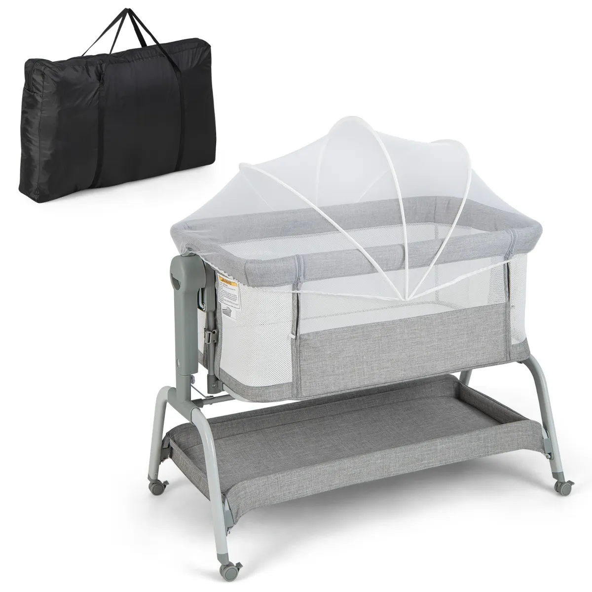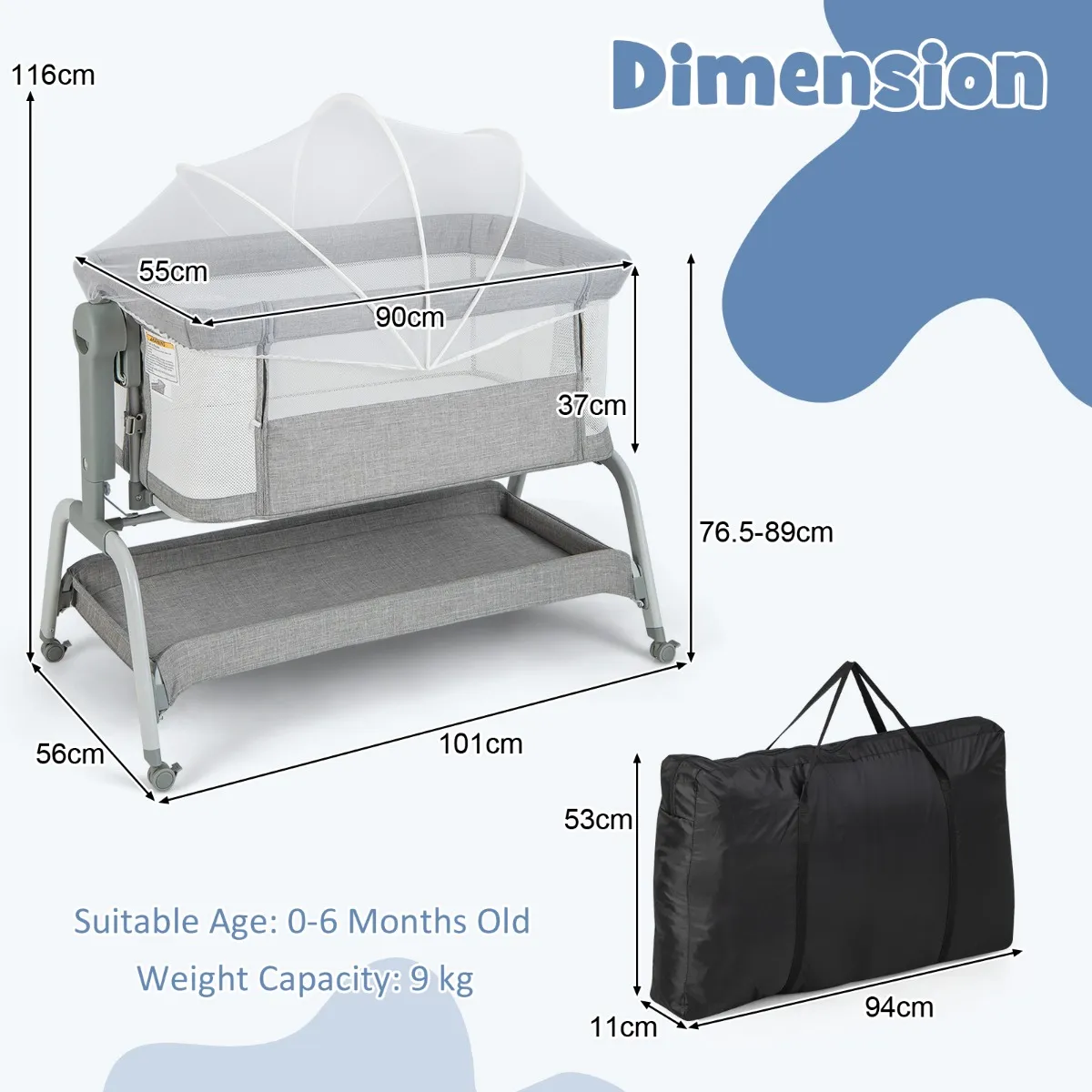 【Veelzijdig 4-in-1 ontwerp】Dit co-sleeping wiegje met netje kan gebruikt worden als wiegje, verhogingsbedje of reisbedje, terwijl het afneembare, ademende netje je baby beschermt tegen beten.