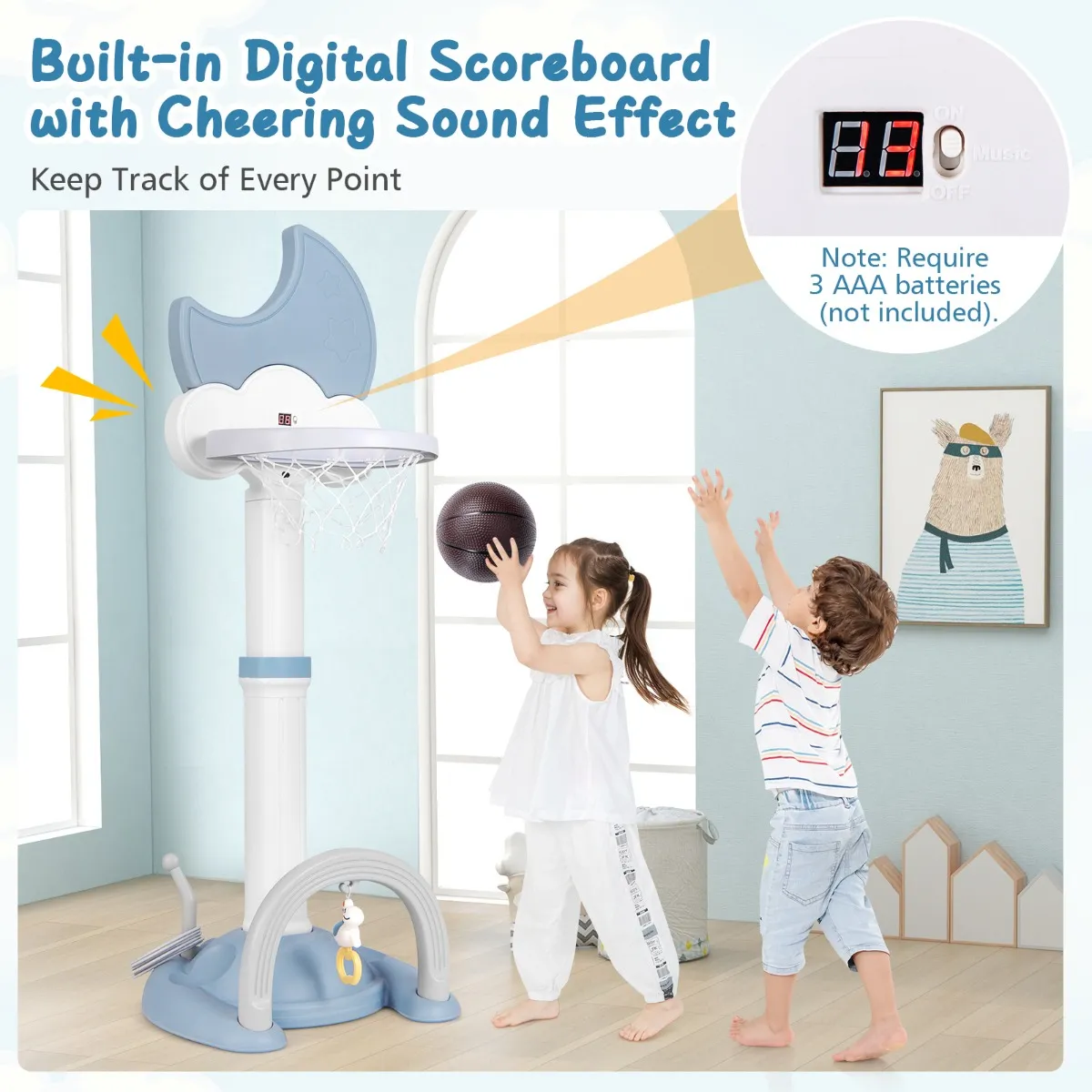 【Boeiende functies】: Digitaal scorebord met juichgeluidseffect helpt je elk punt bij te houden. Opmerking: vereist 3 AAA-batterijen (niet meegeleverd). Het voetbaldoel met bel moedigt kinderen aan om te scoren.