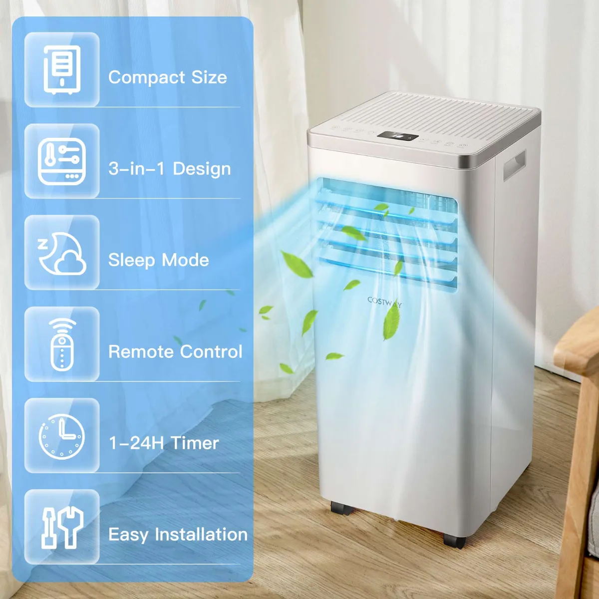 Onze draagbare airconditioner biedt 3 werkingsstanden, 24 uur timer en 2 windsnelheden, die aan uw verschillende behoeften voldoen. Ook is de speciale slaapstand van deze AC-eenheid in staat om de mogelijkheid van het krijgen van koud te verminderen. Gebruikers kunnen de luchtkoeler instellen via het bedieningspaneel of de afstandsbediening. Bovendien is de airconditioner ontworpen met verzonken handvat en wielen voor eenvoudige verplaatsing. Uitgerust met kinderslot functie, onze airconditioner is perfect voor gezinnen met kinderen. Bovendien is de installatie aan het raam eenvoudig met behulp van de instructies en de meegeleverde raamkit en andere accessoires.