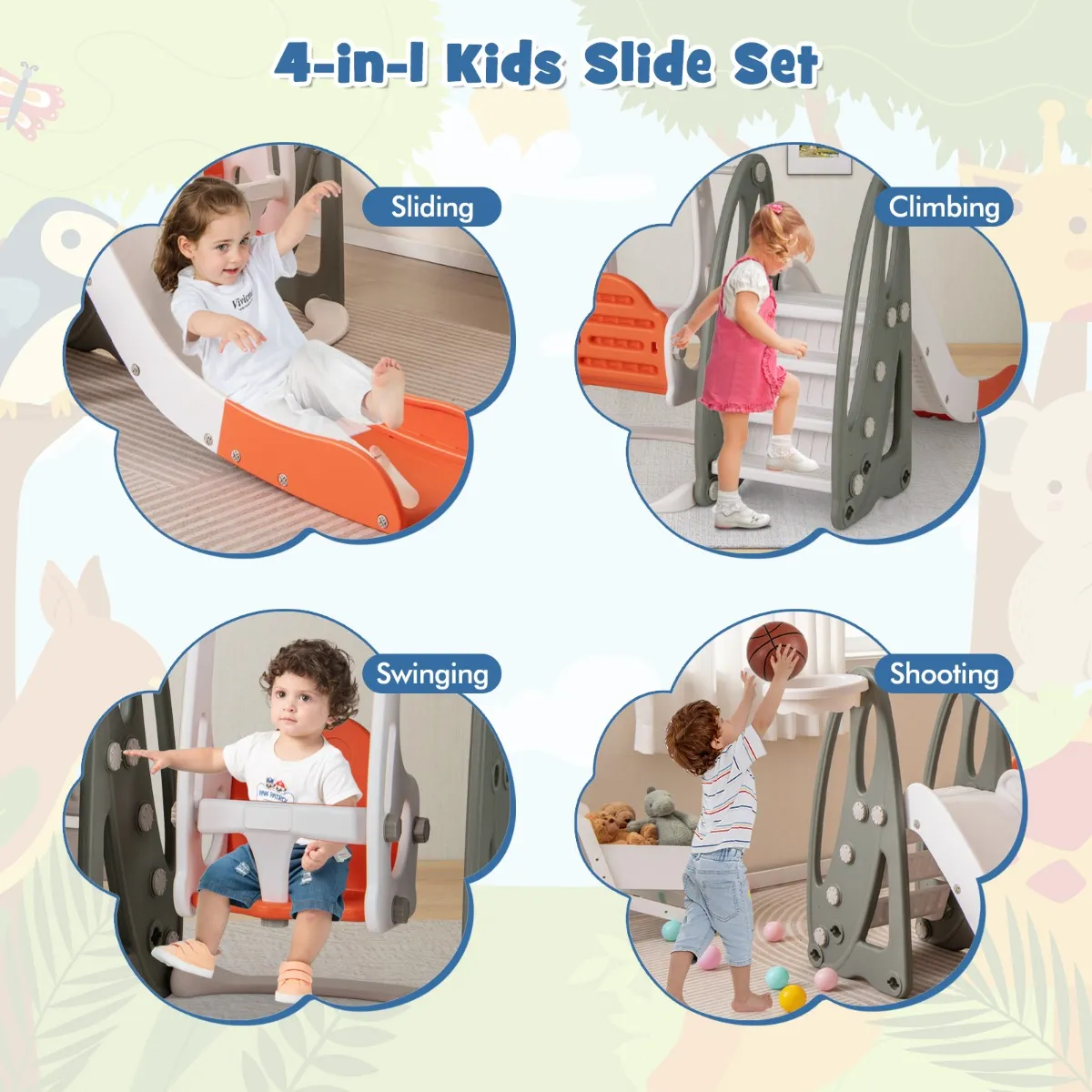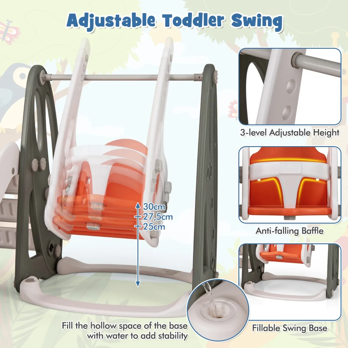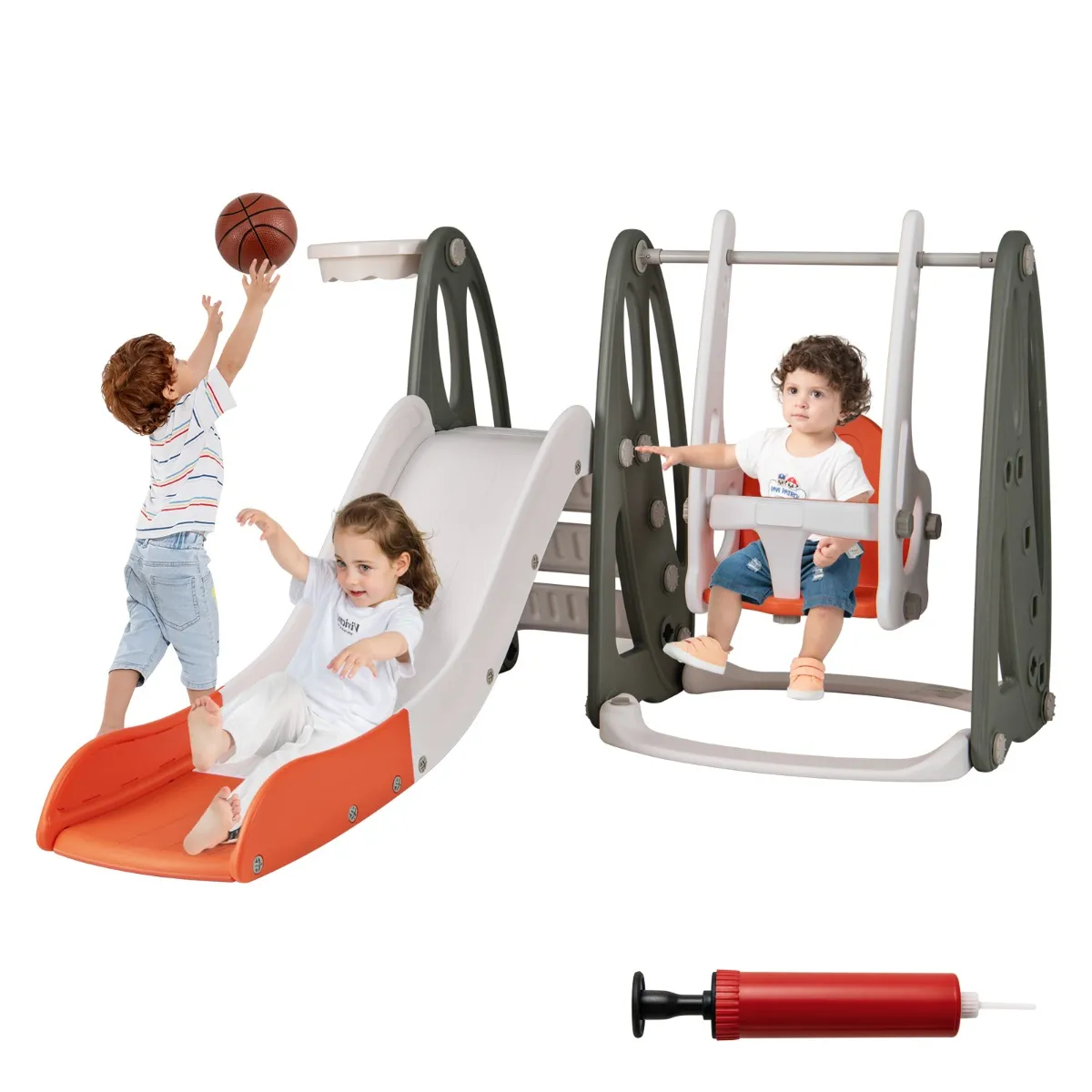 Deze peuterglijbaan en schommelset is gemaakt van BPA-vrij HDPE, zodat kinderen ouder dan 18 maanden veilig kunnen spelen. Het combineert een glijbaan, schommel, basketbalring en trap zodat ze met hun vriendjes kunnen spelen. De glijbaan is ontworpen met een bufferzone en verhoogde hellingen voor veilig glijden. De babyschommel is in hoogte verstelbaar in 3 standen. Met de bijgeleverde basketbalring en bal kunnen ze hun schietvaardigheden oefenen. Verras je kinderen met deze glijbaan en schommel speelset.