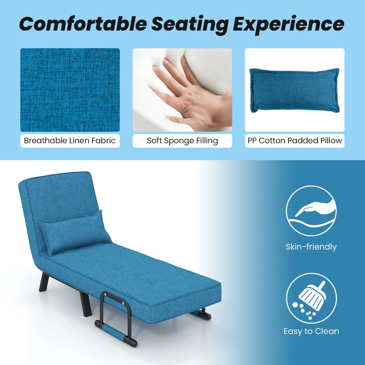 Hij kan als bed, bankstoel en ligstoel worden gebruikt, wat aan al je zit- of slaapbehoeften voldoet. De zitting is gemaakt van hoogwaardig linnen en elastische spons voor een aangename zitervaring. Bovendien zorgt het zachte kussen voor meer comfort. Je kunt je armen ook om te ontspannen op de armleuningen leggen. Bovendien is de afneembare kussenhoes gemakkelijk te reinigen. Afgezien daarvan wordt de slaapbank door metalen poten gedragen die sterk genoeg zijn om een hoog draagvermogen te dragen. Bovendien kunnen de inklapbare, verborgen poten bij niet-gebruik in de rugleuning worden opgeborgen.