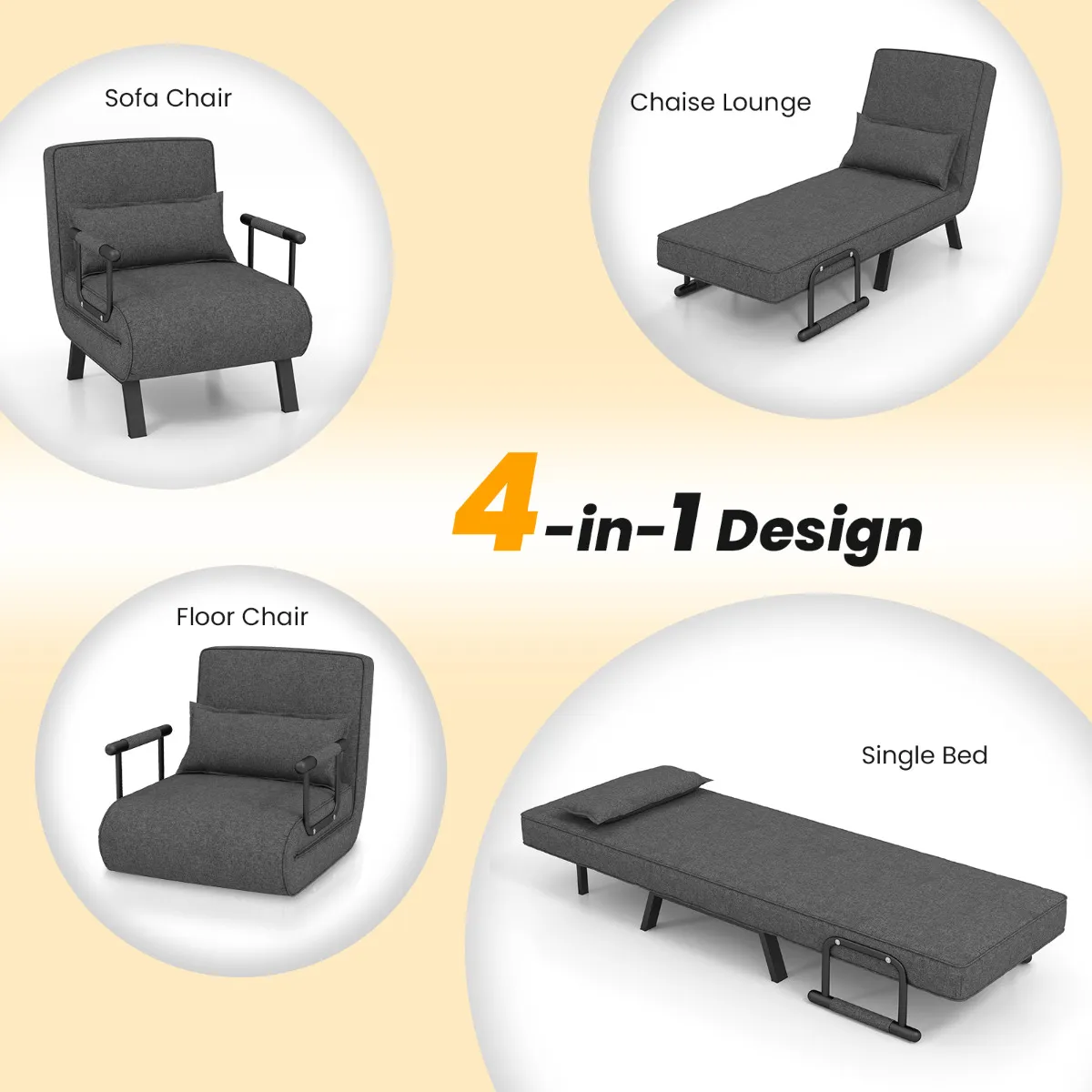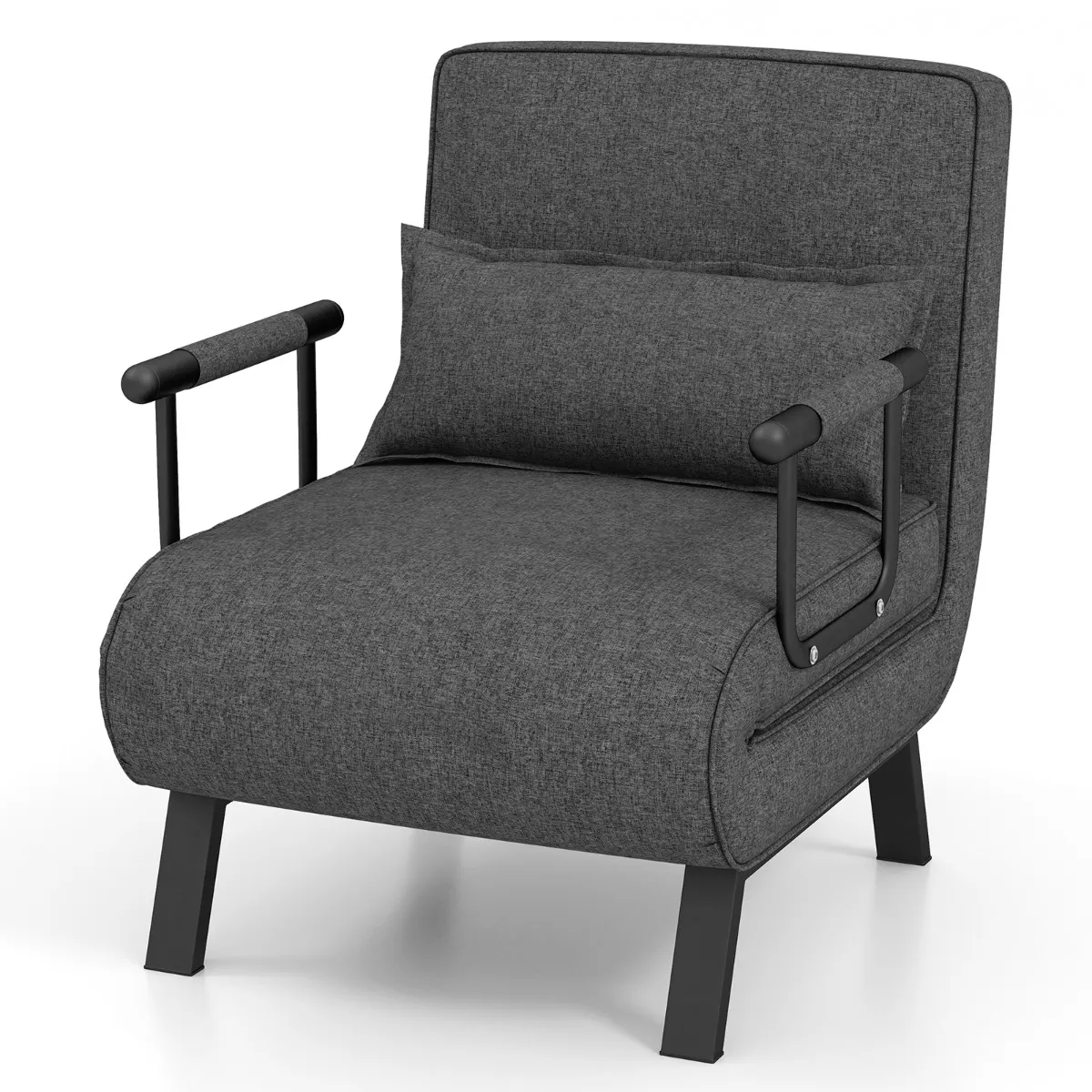 Hij kan als bed, bankstoel en ligstoel worden gebruikt, wat aan al je zit- of slaapbehoeften voldoet. De zitting is gemaakt van hoogwaardig linnen en elastische spons voor een aangename zitervaring. Bovendien zorgt het zachte kussen voor meer comfort. Je kunt je armen ook om te ontspannen op de armleuningen leggen. Bovendien is de afneembare kussenhoes gemakkelijk te reinigen. Afgezien daarvan wordt de slaapbank door metalen poten gedragen die sterk genoeg zijn om een hoog draagvermogen te dragen. Bovendien kunnen de inklapbare, verborgen poten bij niet-gebruik in de rugleuning worden opgeborgen.