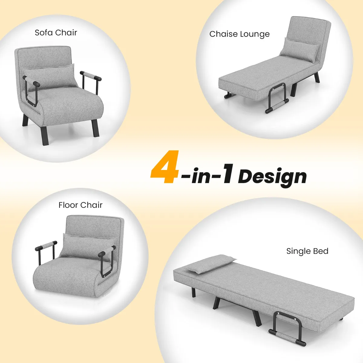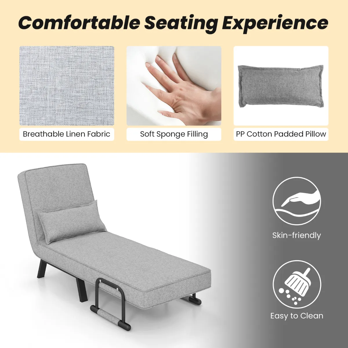 Hij kan als bed, bankstoel en ligstoel worden gebruikt, wat aan al je zit- of slaapbehoeften voldoet. De zitting is gemaakt van hoogwaardig linnen en elastische spons voor een aangename zitervaring. Bovendien zorgt het zachte kussen voor meer comfort. Je kunt je armen ook om te ontspannen op de armleuningen leggen. Bovendien is de afneembare kussenhoes gemakkelijk te reinigen. Afgezien daarvan wordt de slaapbank door metalen poten gedragen die sterk genoeg zijn om een hoog draagvermogen te dragen. Bovendien kunnen de inklapbare, verborgen poten bij niet-gebruik in de rugleuning worden opgeborgen.