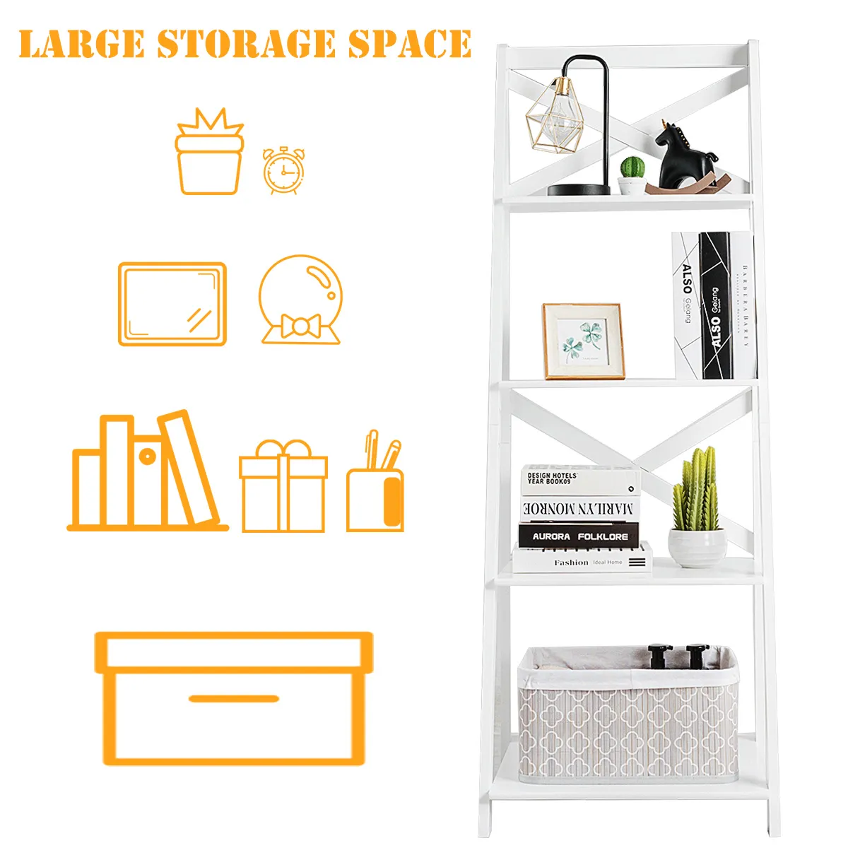 【Modern en eenvoudig uiterlijk】Eenvoudige A-vormige modellering voegt een modern gevoel toe aan uw huis of kantoor. Het is vermeldenswaard dat deze opbergplank met stijlvol ontwerp ook in alle decorstijlen van uw woonkamer, slaapkamer, badkamer, keuken, balkon en kantoor past.