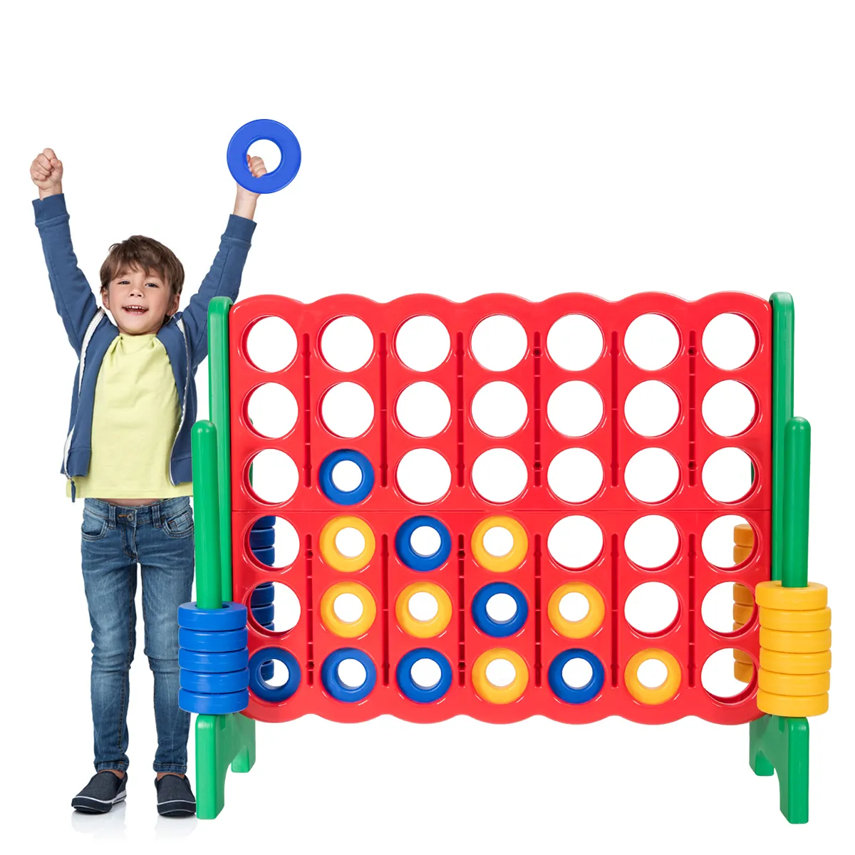 De volgende vakantie of een verjaardag nadert elk moment. Heeft u al besloten wat u uw kinderen voor deze gelegenheden wilt geven? Zorg ervoor dat je deze match 4-gameset bekijkt die veel plezier kan brengen voor je hele gezin. Terwijl kleinere kinderen de regels en bewegingen leren en uitvoeren, ontwikkelen ze tegelijkertijd speels teamgeest en coöperatieve vaardigheden. Het spel is met een afmeting van 104 cm ideaal voor zowel kinderen als volwassenen, zodat je altijd tegen je kind kunt strijden en samen een geweldige tijd kunt beleven. Onze match 4-gameset is gemaakt van hoogwaardige PE- en PP-materialen die het spel een lange levensduur geven. Waar wacht je op? Bestel nu deze vier-op-een-rij-spelset en bezorg je kinderen, vrienden en familie veel plezier!