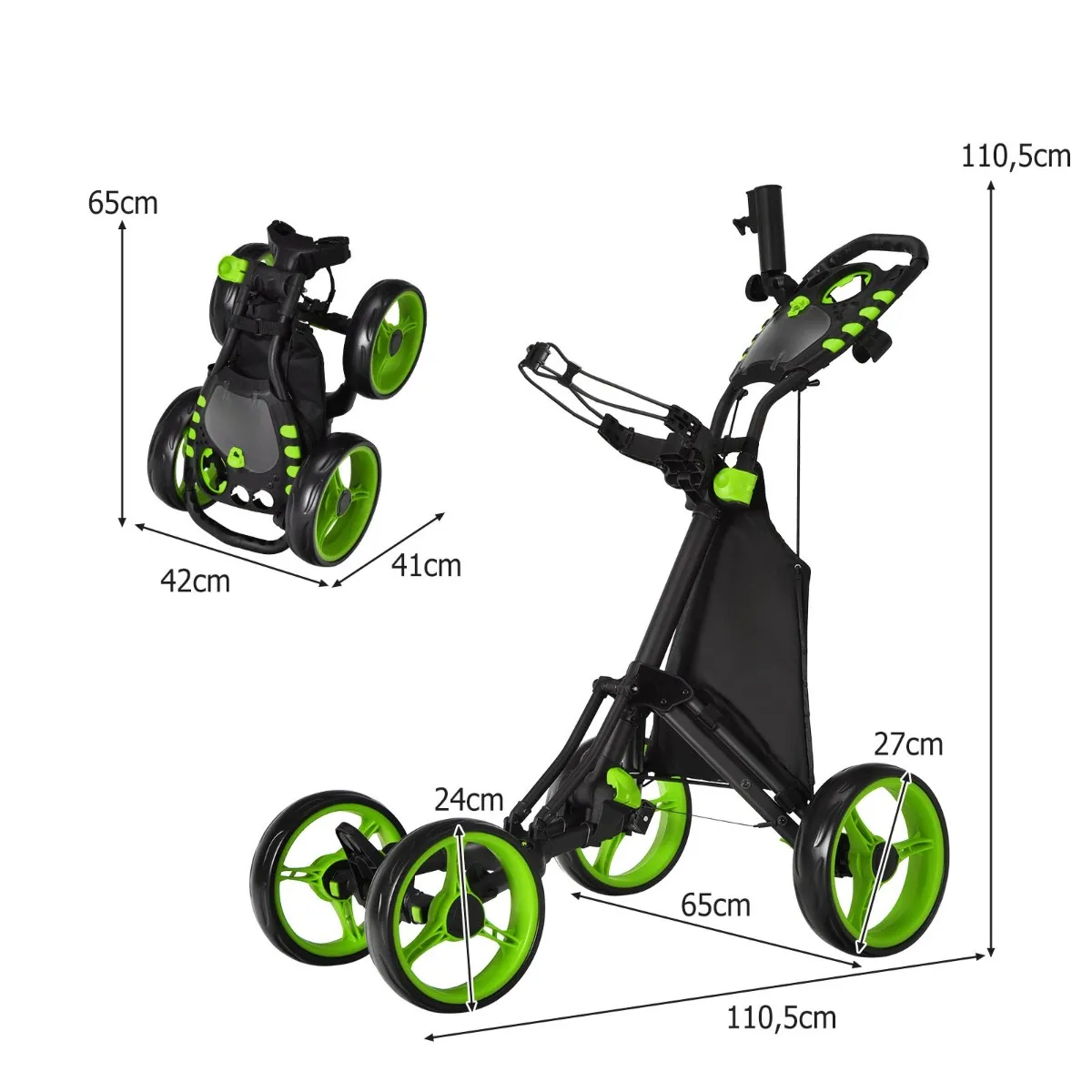 4-Wiel Golftrolley Opvouwbare Golftrolley Aluminium Golftrolley Golftrolley Met Parapluhouder Teehouder En Opbergtas-Groen