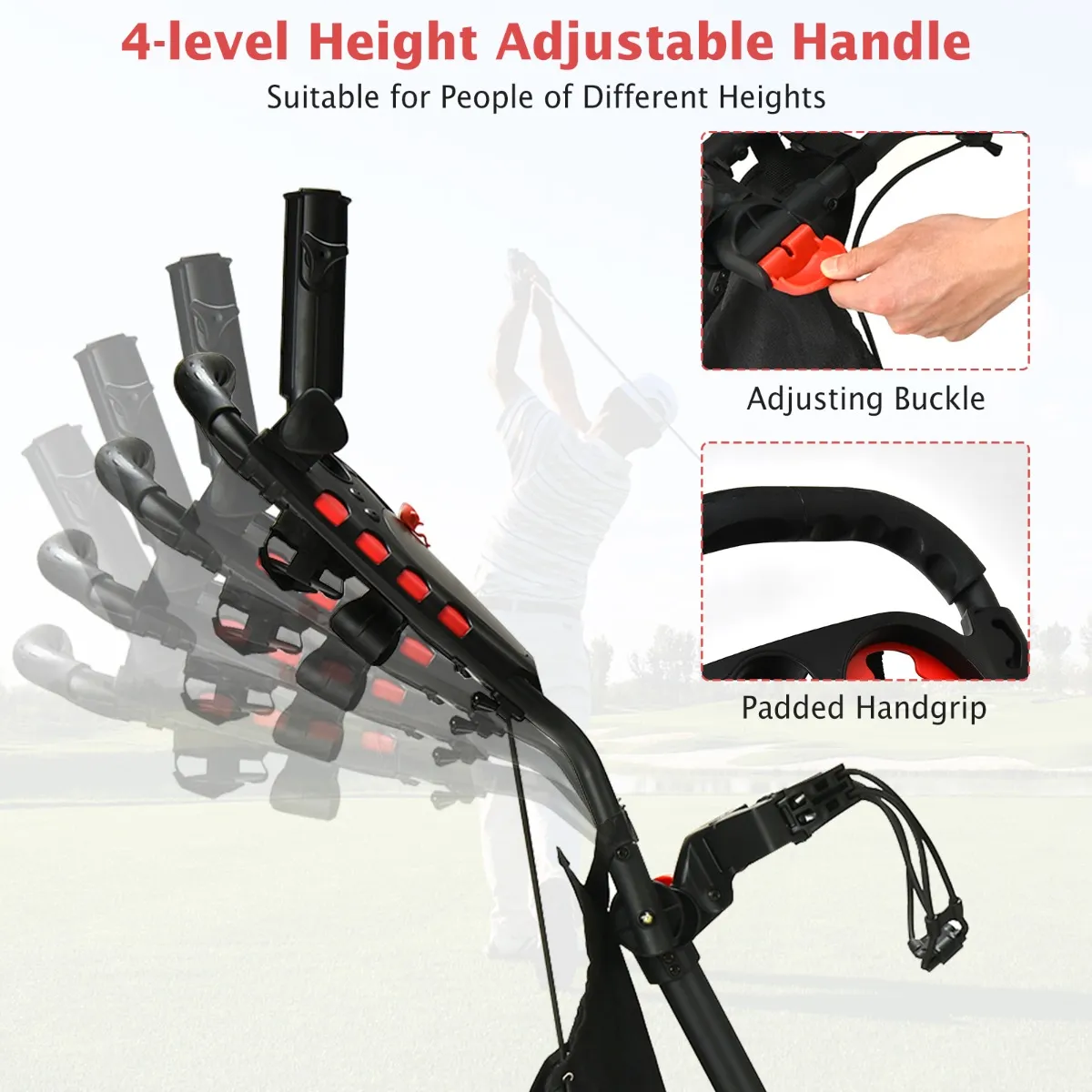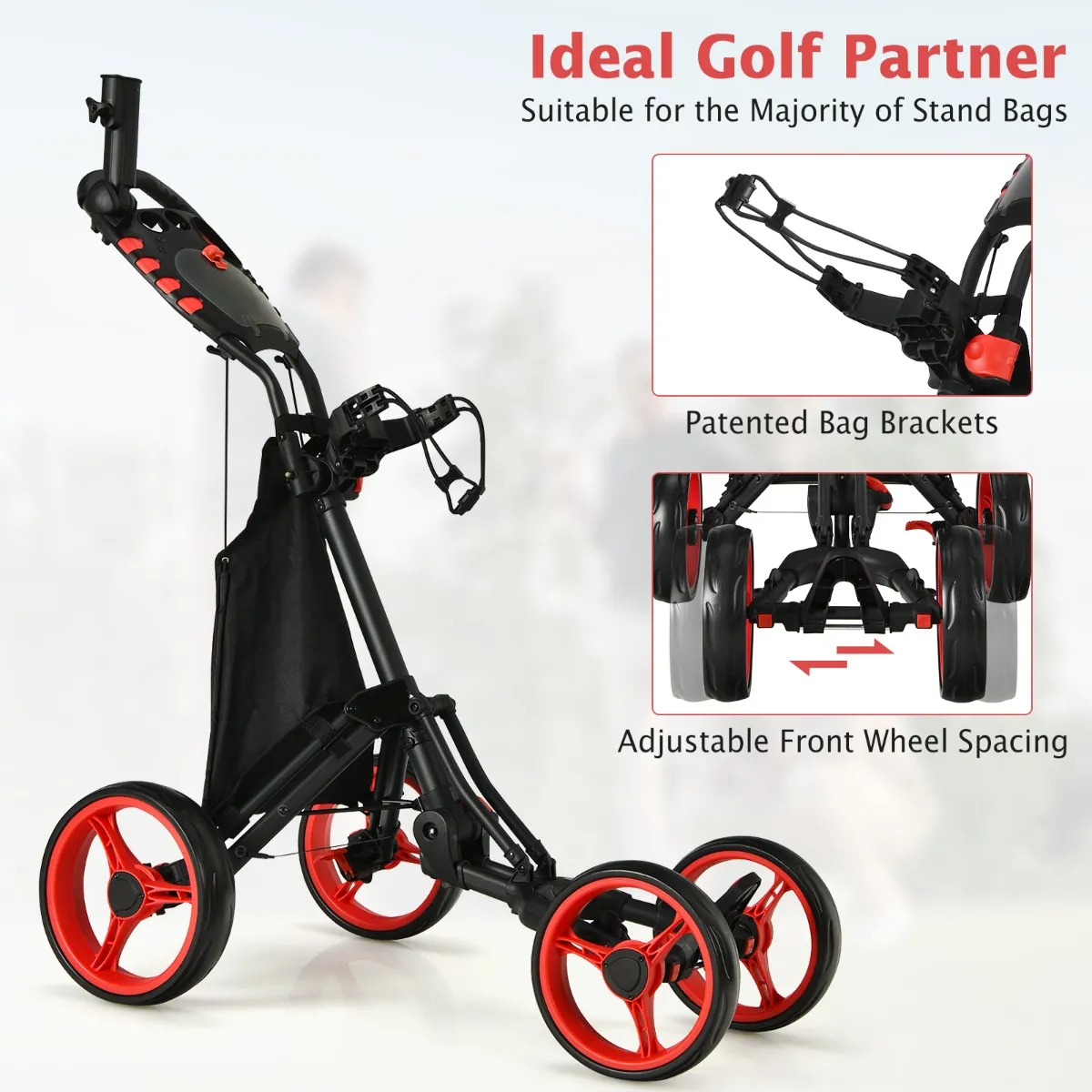4-Wiel Golftrolley Opvouwbare Golftrolley Aluminium Golftrolley Golftrolley Met Parapluhouder Teehouder En Opbergtas-Rood