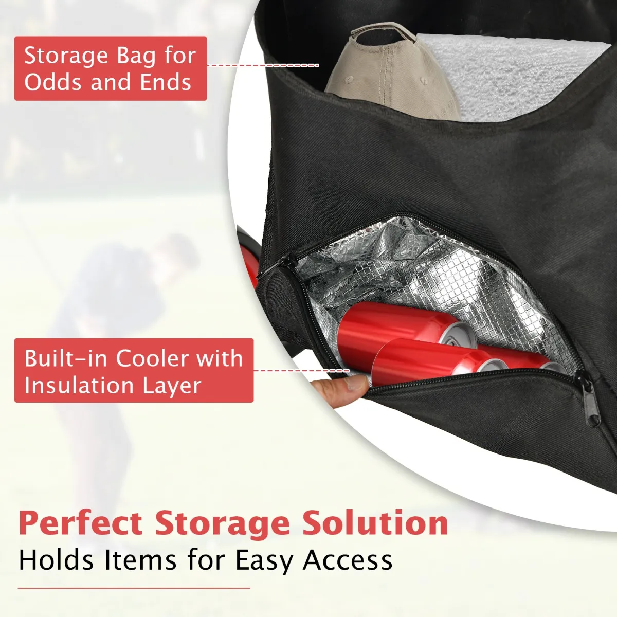 【Voldoende opbergruimte】: Een extra opbergnet op de waterdichte tas is geschikt voor het opbergen van je persoonlijke spullen voor buitenactiviteiten. De scorekaart is geïntegreerd in een opbergvak voor golfballen, scorekaart en drinkfles. Het is ook perfect om je paraplu in op te bergen.