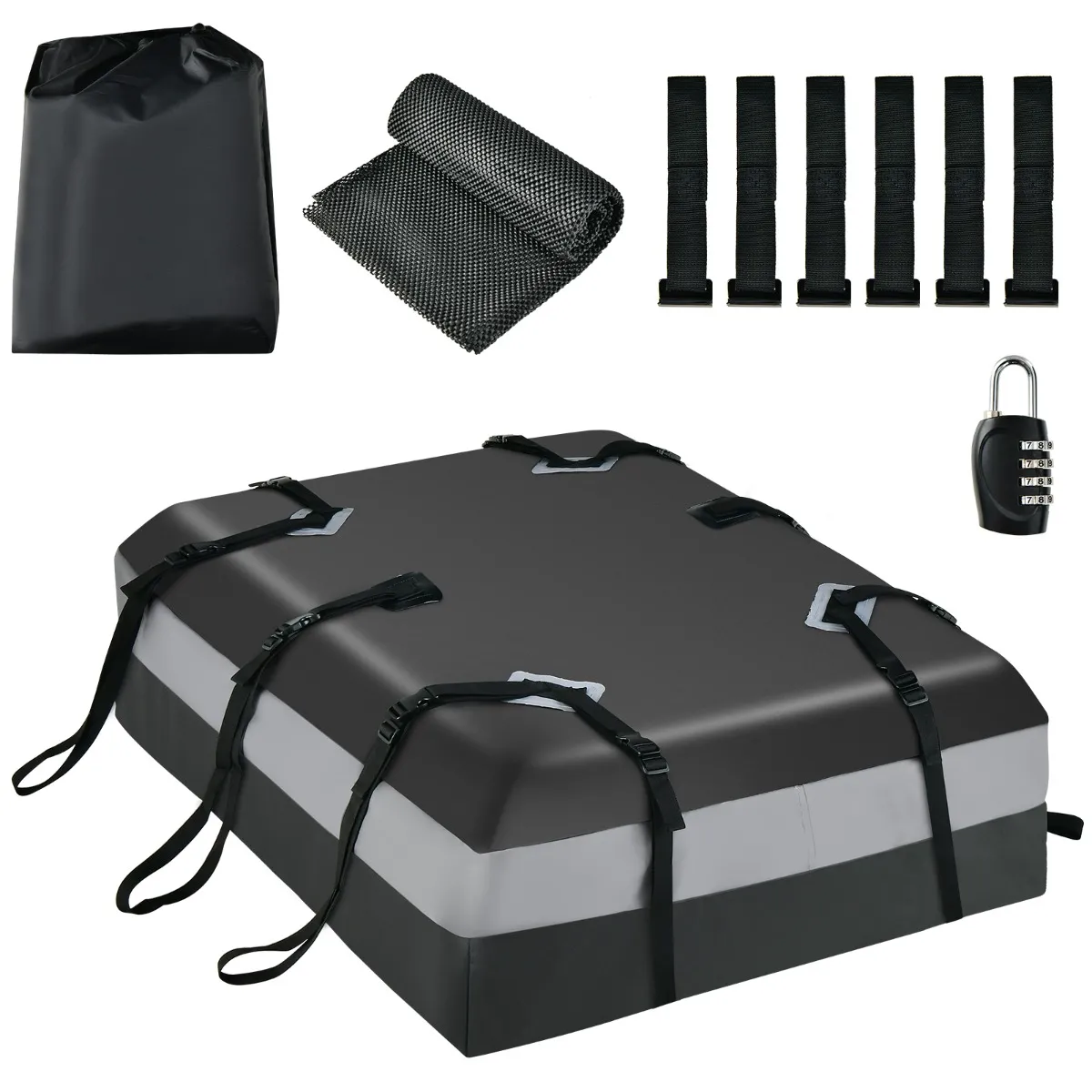 【Verbeterde veiligheid】 De autotas wordt geleverd met een antislipmat die ontworpen is om het autodak te beschermen tegen krassen en te voorkomen dat de bagage wegglijdt. Hij heeft ook een 4-cijferig combinatieslot en haken om te voorkomen dat de rits losraakt.