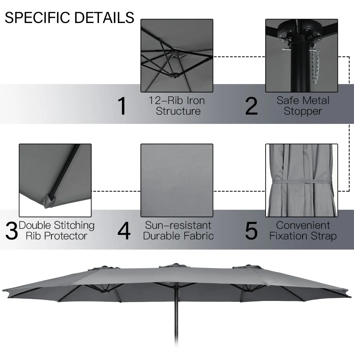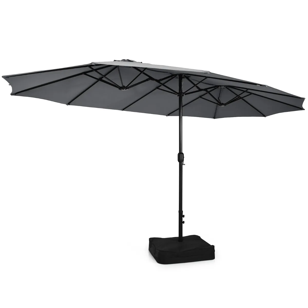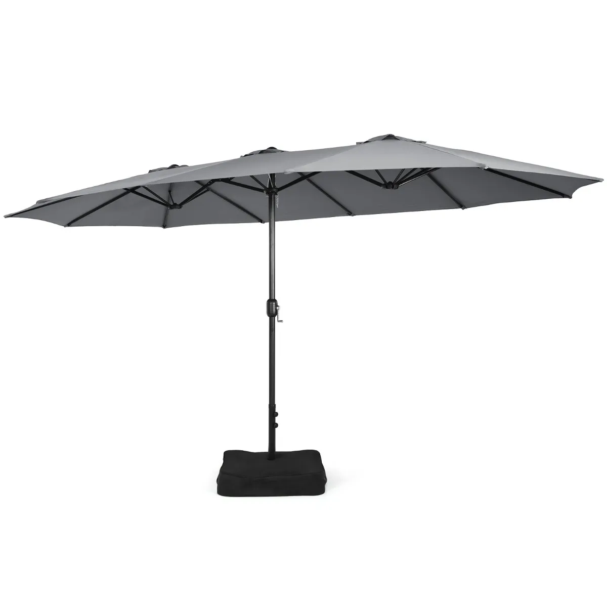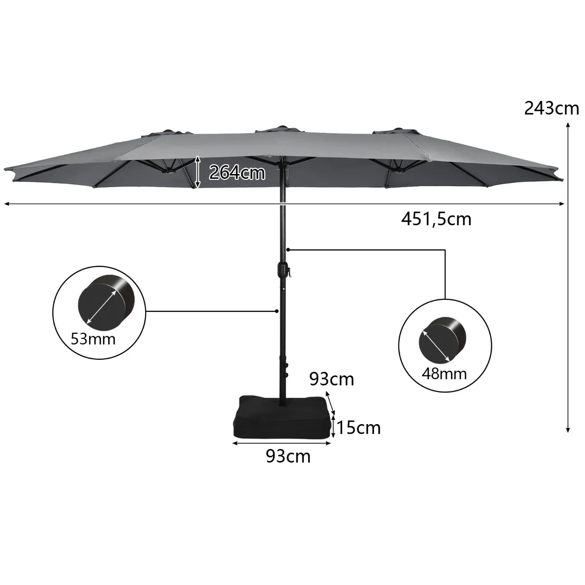 451,5 X 264 Cm Dubbele Parasol Met Standaard Parasol Groot XXL UPF 50+ Terrasparasol Marktscherm Voor Tuin Terras En Zwembad-Grijs