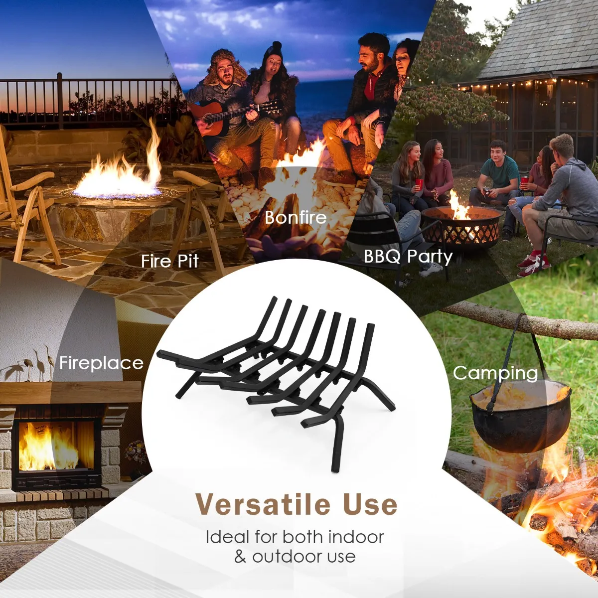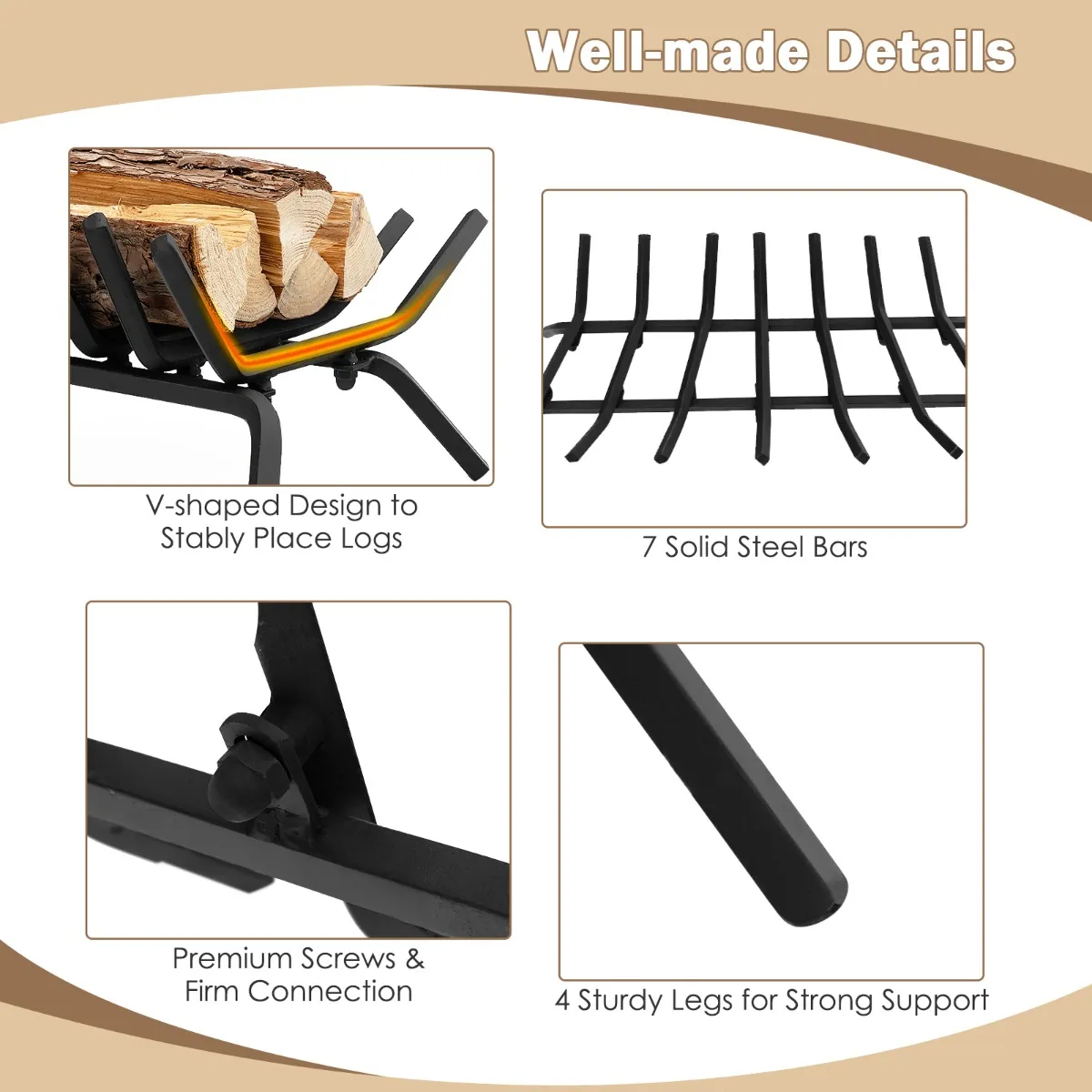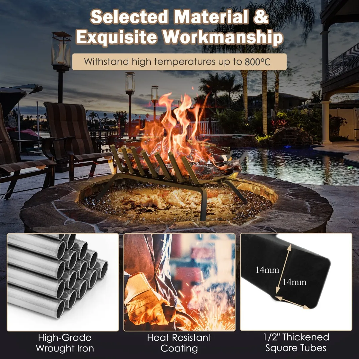 Ons stevige ijzeren haardrooster zal een functioneel hulpmiddel zijn bij het verbranden van brandhout. Het is gemaakt van smeedijzer van hoge kwaliteit met een hittebestendige coating, is extreem stabiel en bestand tegen hoge temperaturen. 7 14 mm dikke steunbalken zorgen voor een hoog draagvermogen. En het ‘V’-ontwerp maakt het gemakkelijk om houtblokken te verbranden. De verhoogde basis zorgt voor een goede luchtcirculatie zodat het brandhout langer kan branden. Dit compacte rooster is perfect voor gebruik in open haarden en buitenhaarden.