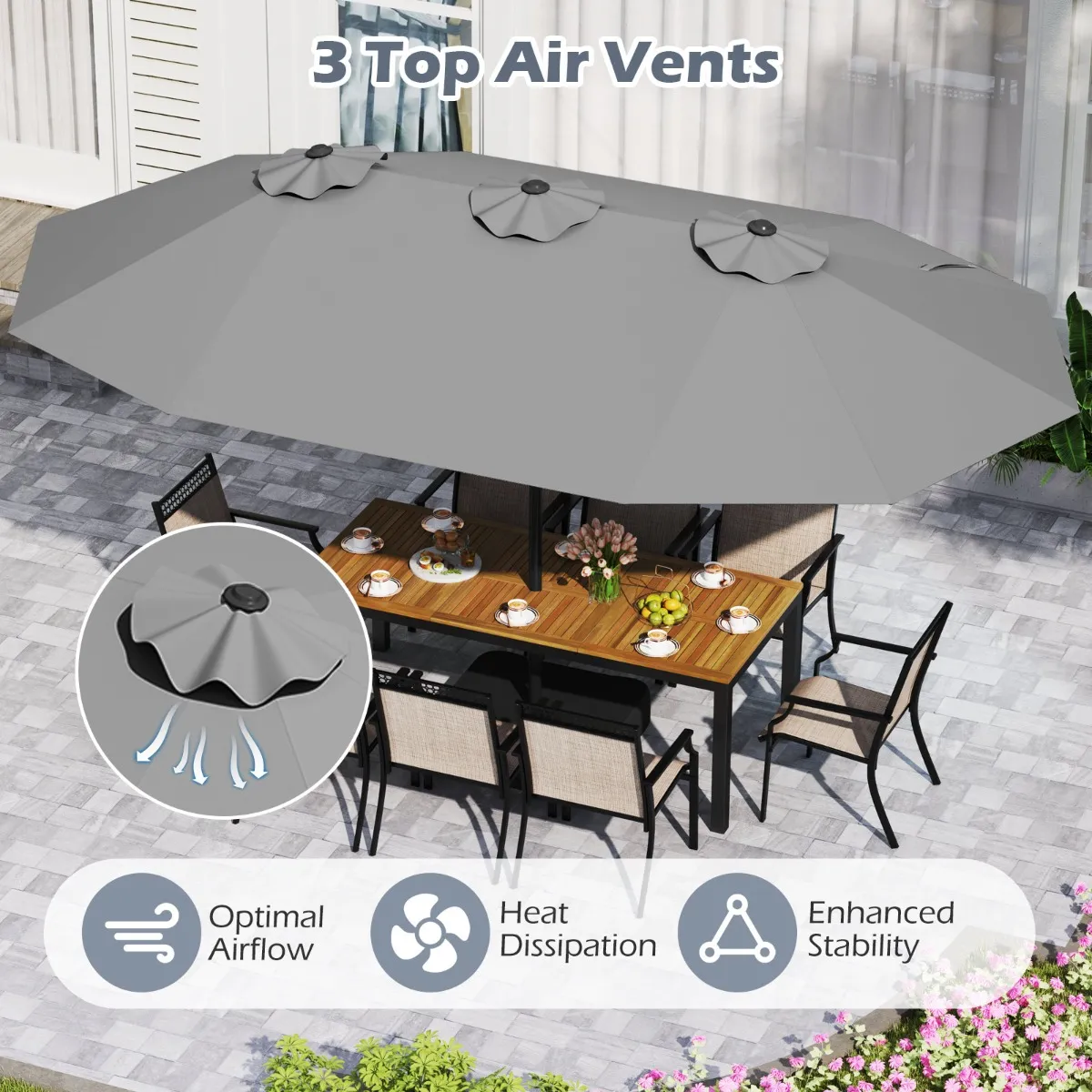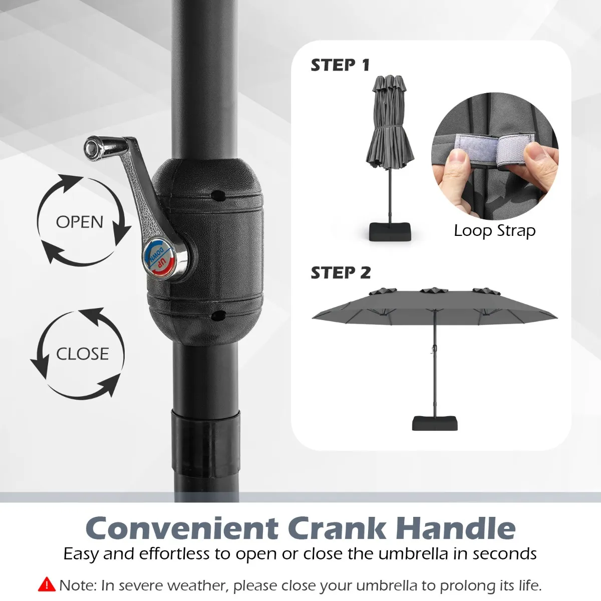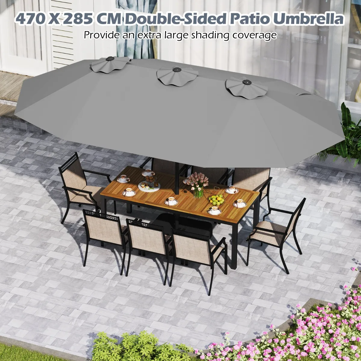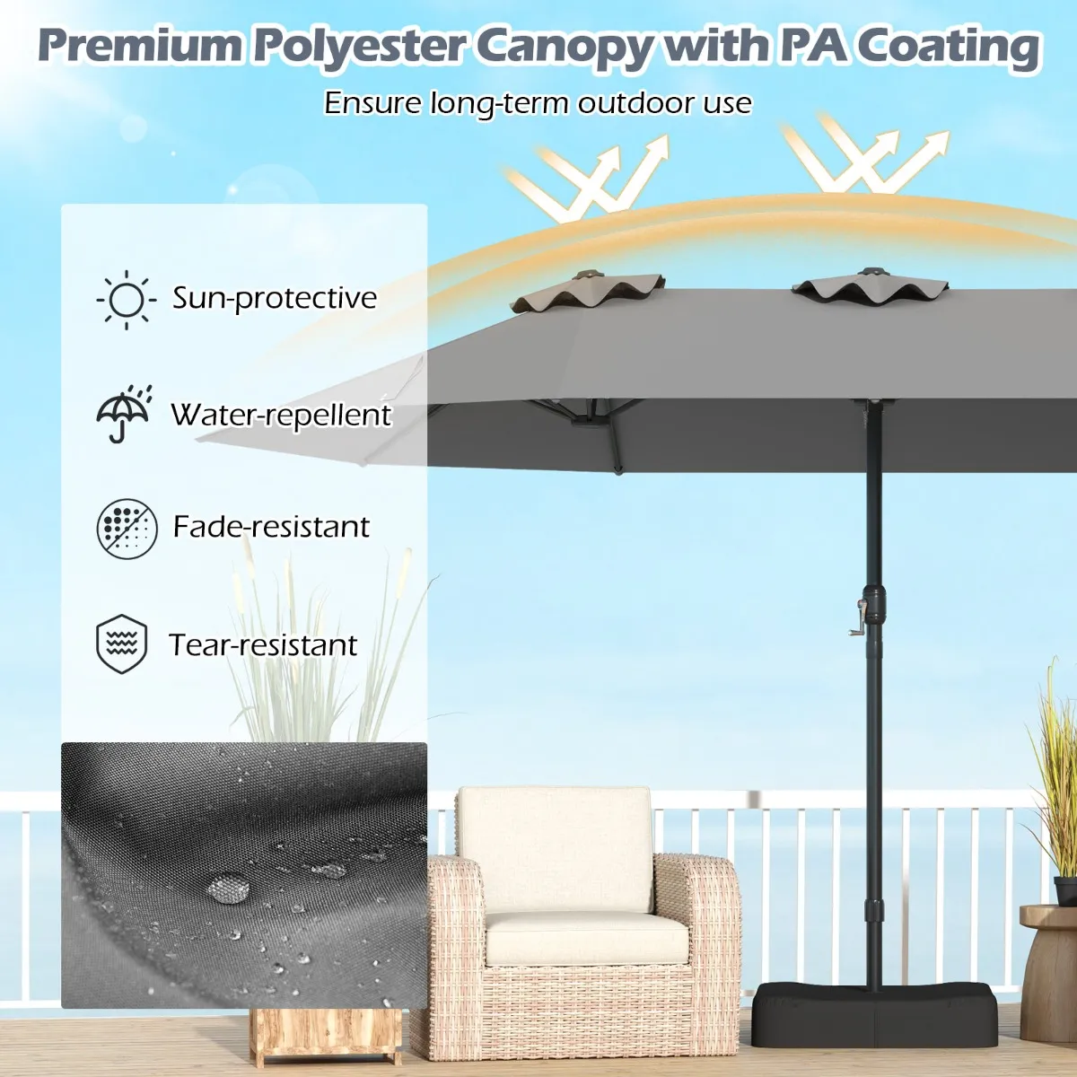 470 Cm Terrasparasol Met Voet Zwengel 12 Sterke Baleinen Dubbele Tafelparasol Voor Buiten Rechthoekige Parasol Voor Terras Tuin-Grijs