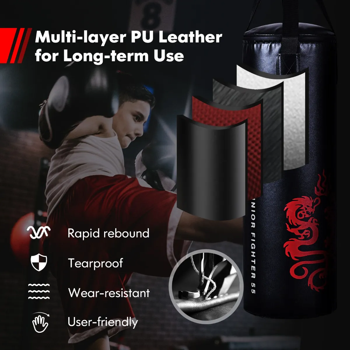 ÂMultifunctionele boksset voor kinderen: Deze hangende bokszak biedt efficiënte training voor jonge vechters, ideaal voor MMA, karate, taekwondo, muay thai, kickboksen en meer. Deze bokszakkenset is een perfect cadeau voor kinderen vanaf 6 jaar en helpt hen hun fysieke conditie te versterken, stress te verlichten, hun zelfvertrouwen te vergroten, enz.