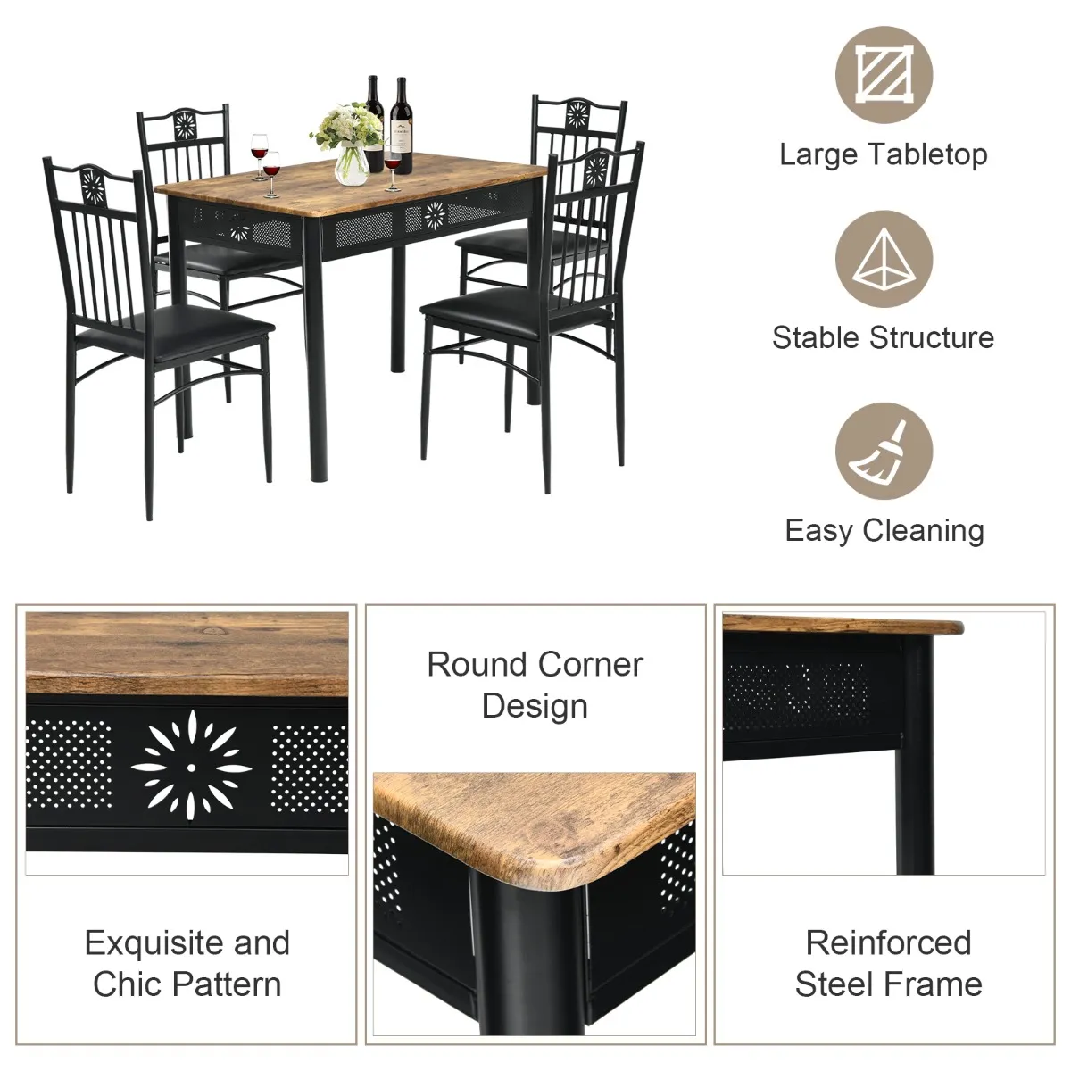 【Uitstekend vakmanschap】De natuurlijke houtnerf en zwarte metalen textuur passen perfect bij het interieurontwerp. Bovendien versterkt deze eettafel set met uitgesneden patroon direct de stijl en voegt een verfijnd gevoel toe aan elke plek, zoals thuis, restaurant, café.