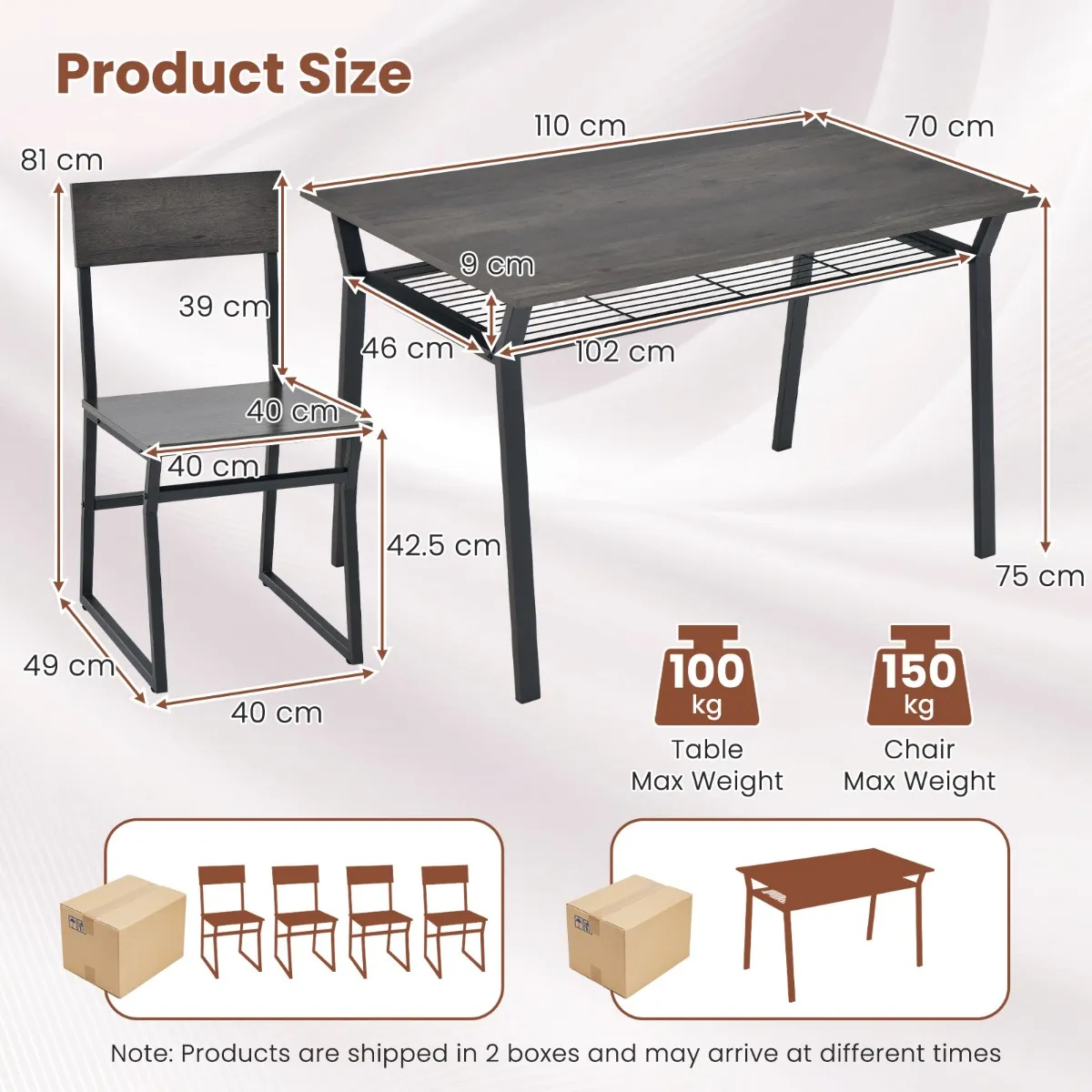 - Afmetingen tafel: 110 x 70 x 75 cm (L x B x H)