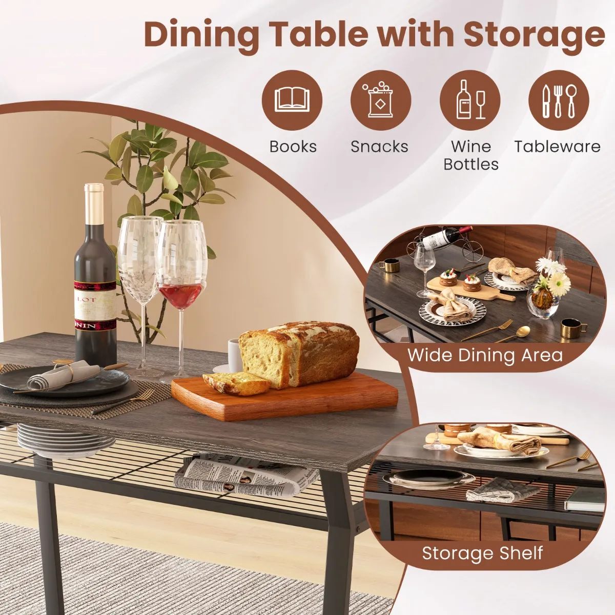 Eettafel met opbergrek voor boeken en snacks