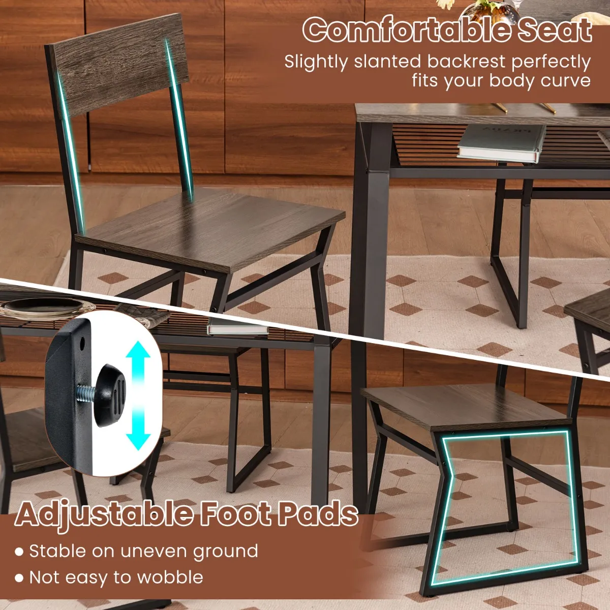 【Perfecte eetset voor 4】: De veelzijdige 5-delige eetset bestaat uit een rechthoekige eettafel en 4 stoelen, ideaal voor familiemaaltijden en intieme bijeenkomsten. Uitgerust met verstelbare rugleuningen bieden de stoelen een aangename en ontspannende ervaring.