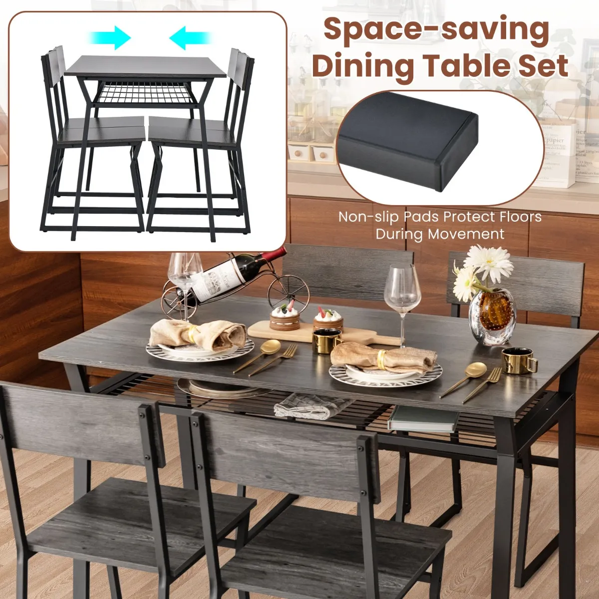 【Ruimtebesparende oplossing】: Na de maaltijd kun je de stoelen gewoon onder de tafel schuiven om een compacte, opgeruimde look te creëren. Deze ingenieuze functie maakt onze eettafelset de ideale keuze voor kleine ruimtes.