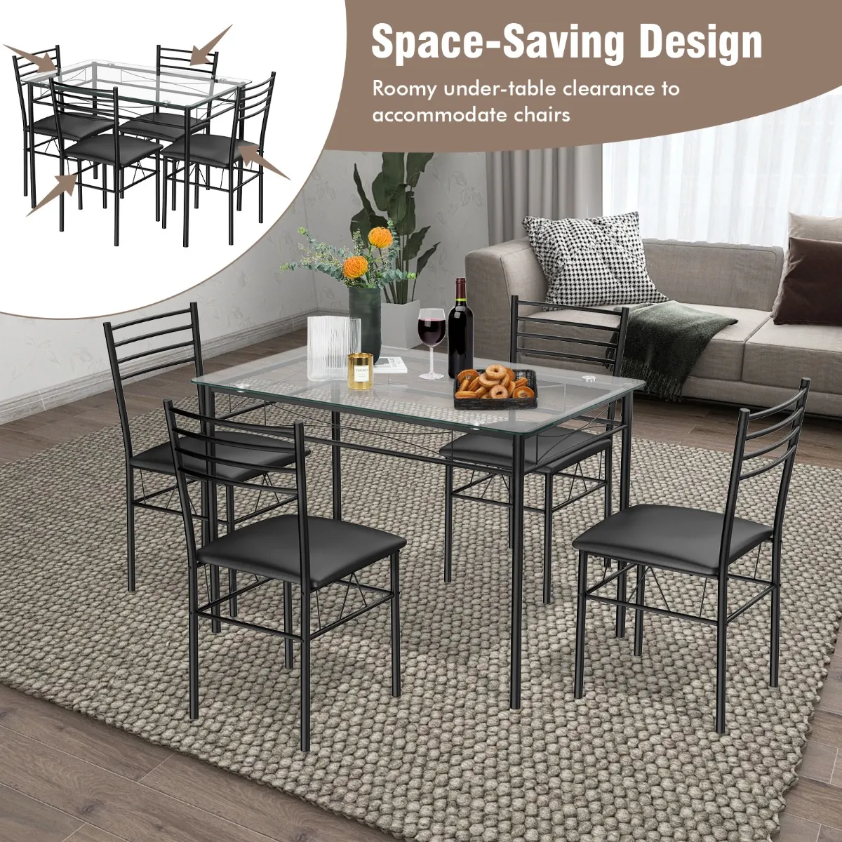 【Hoogwaardig materiaal en stevige structuur】 Het tafelblad bestaat uit gehard glas, dat robuust en duurzaam is. De set zelf beschikt over een hoogwaardig metalen frame en biedt jarenlang betrouwbaar gebruik. De verbinding wordt met hoogwaardige schroeven vastgezet en is stevig om een hoog draagvermogen te garanderen.