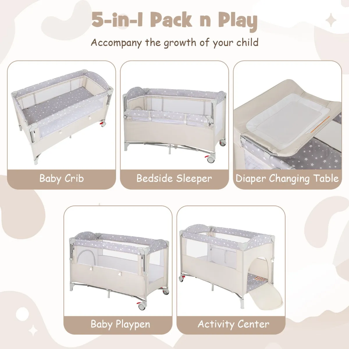 Ledikant, luiertafel, box en activiteitencentrum in één product