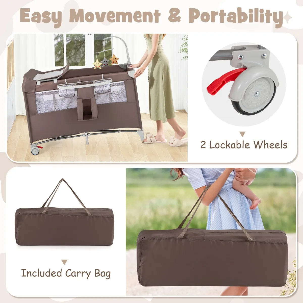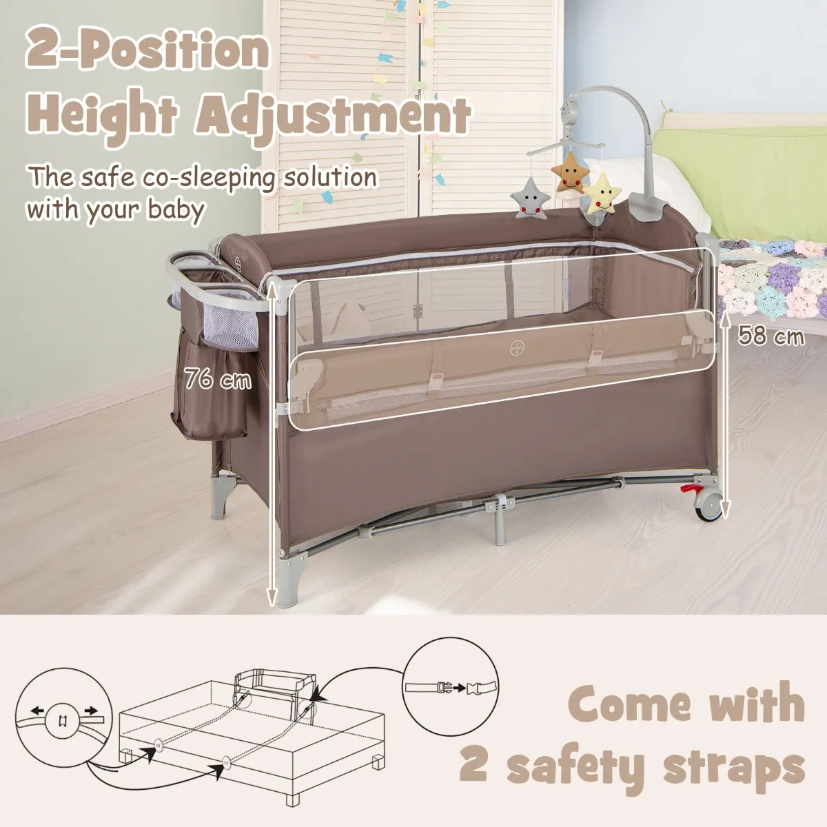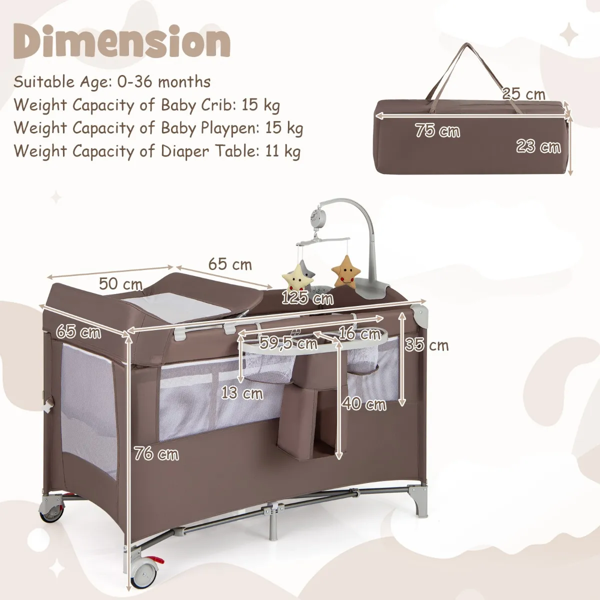 Dit kindercentrum is ook te gebruiken als wieg, luiertafel, box en activiteitencentrum. Het wordt geleverd met veiligheidsriempjes voor veilig samen slapen en voeden. De afneembare luiertafel en het opbergrekje maken het makkelijk om voor je baby te zorgen, terwijl het muziekdoosje en het hangende speelgoed voor rustgevend vermaak zorgen. Deze box is ideaal voor gezinnen die veel onderweg zijn en kan compact worden opgevouwen in de reistas voor gemakkelijk vervoer. Hij is gemaakt van stevige, kindveilige materialen voor een veilige omgeving.