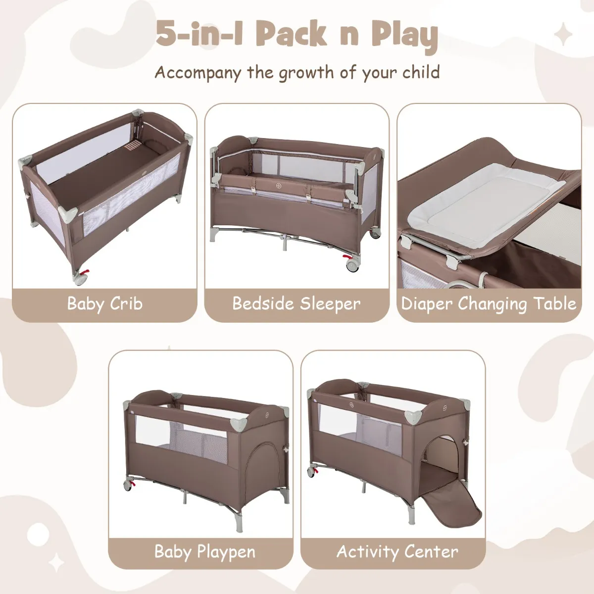 Ledikant, luiertafel, box en activiteitencentrum in één product